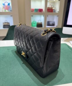 Chanel classica grande jumbo NUOVA caviar doppia patta pelle vitello martellato & effetto dorato