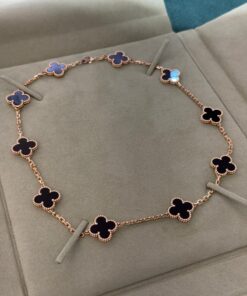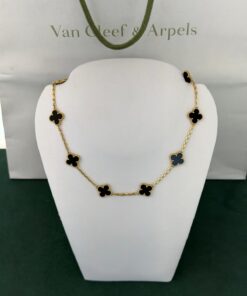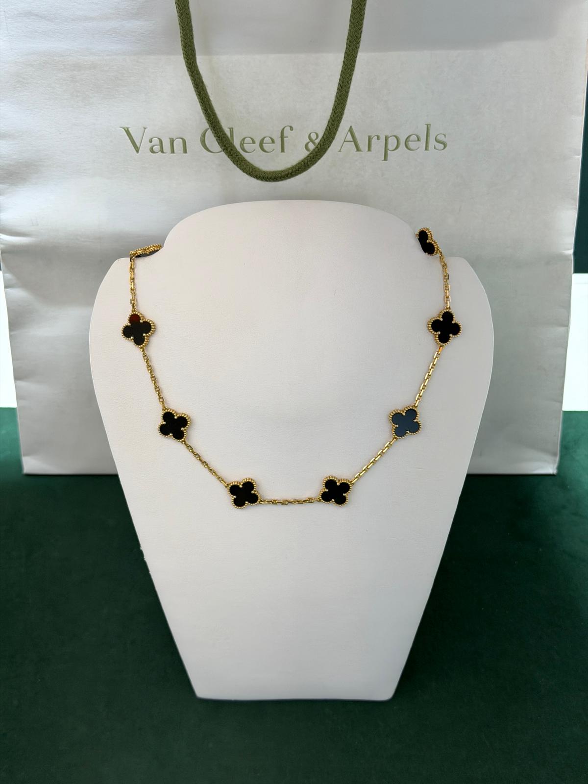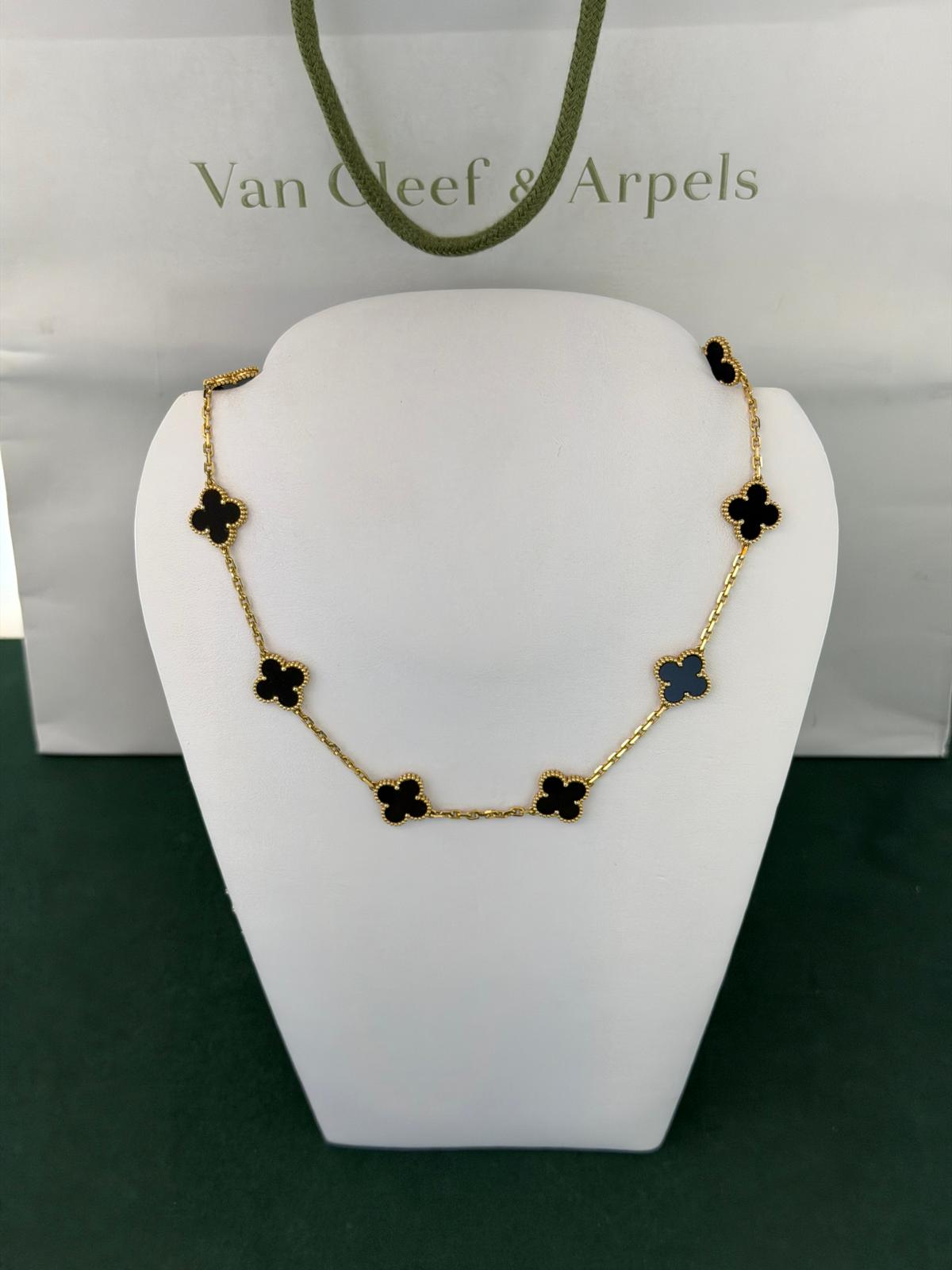 Collana Vintage Alhambra a 10 motivi in oro giallo, pietra onice.