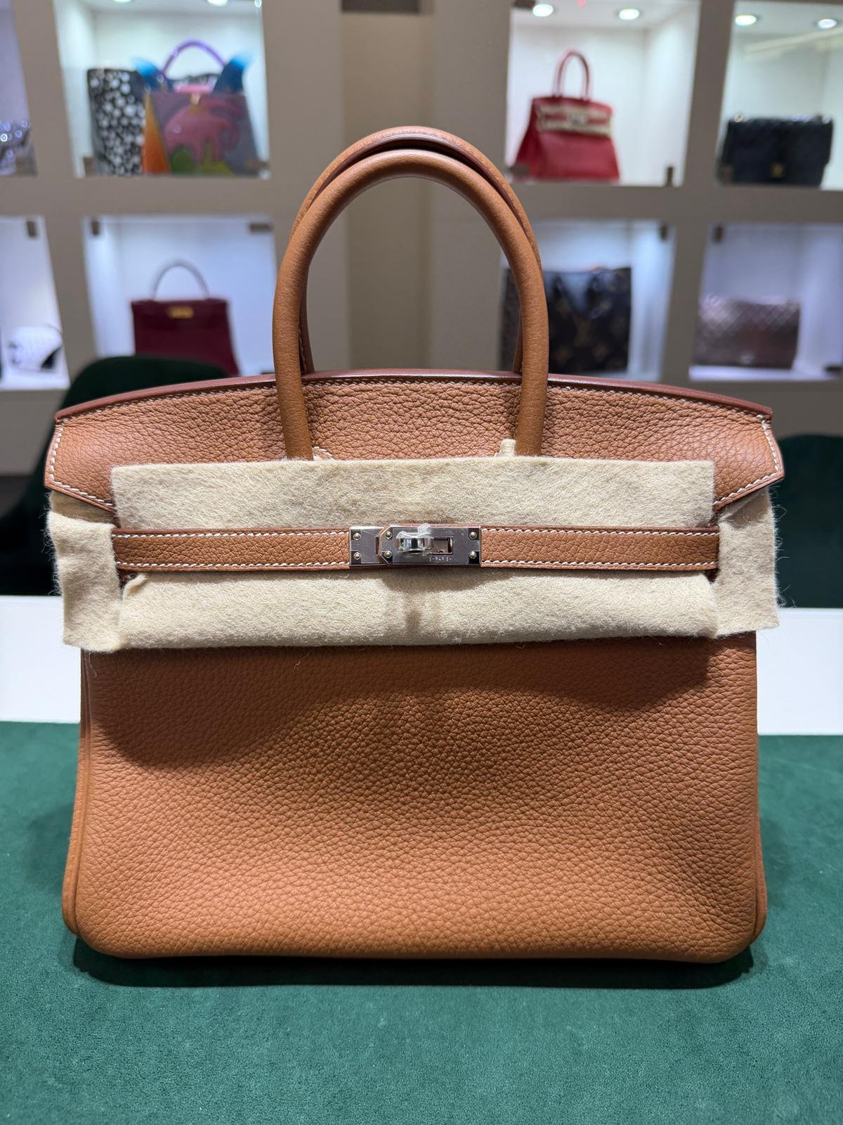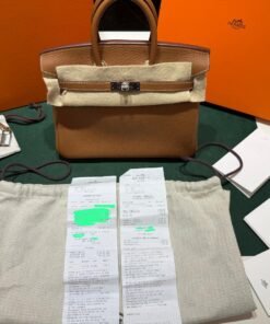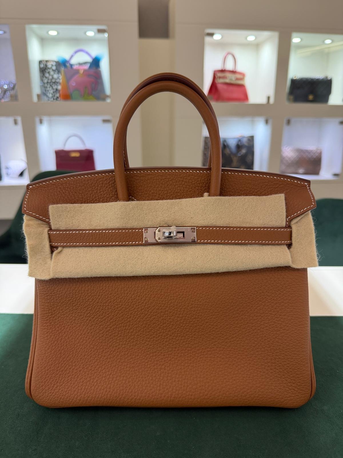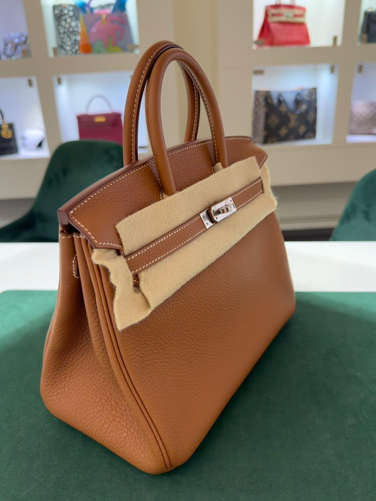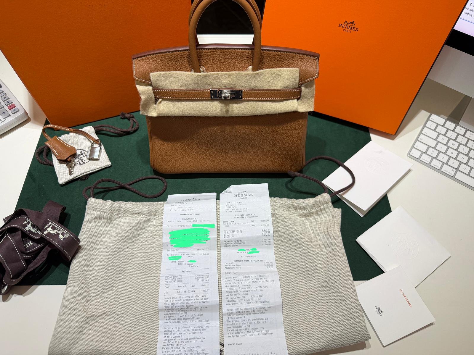 Hermès Birkin 25 retourne veau togo colore GOLD ( il più richiesto ) marrone stampa K NUOVA 2025 hardware palladio full set con scontrino ufficiale Hermès pellicole stickers ovunque .
