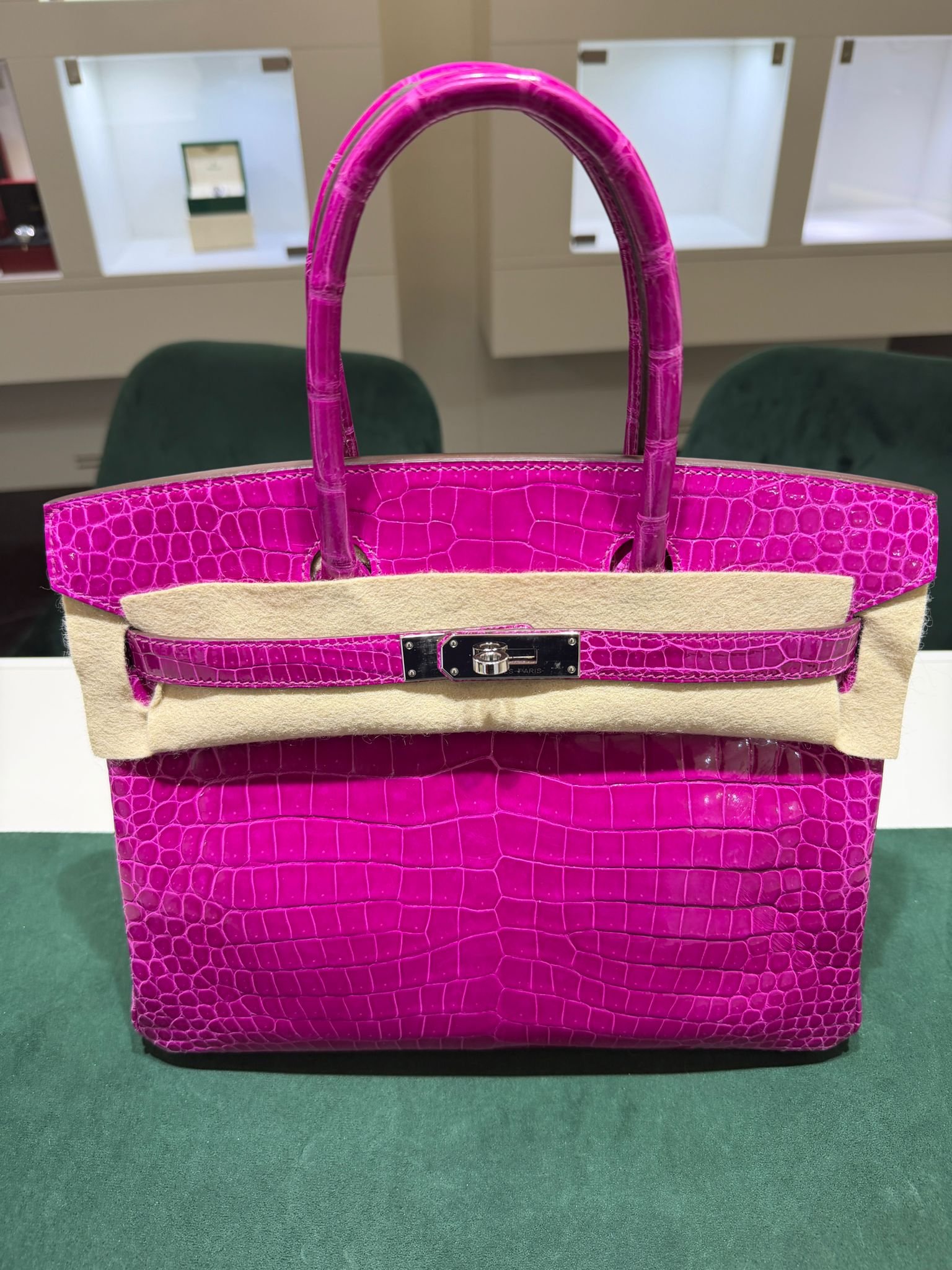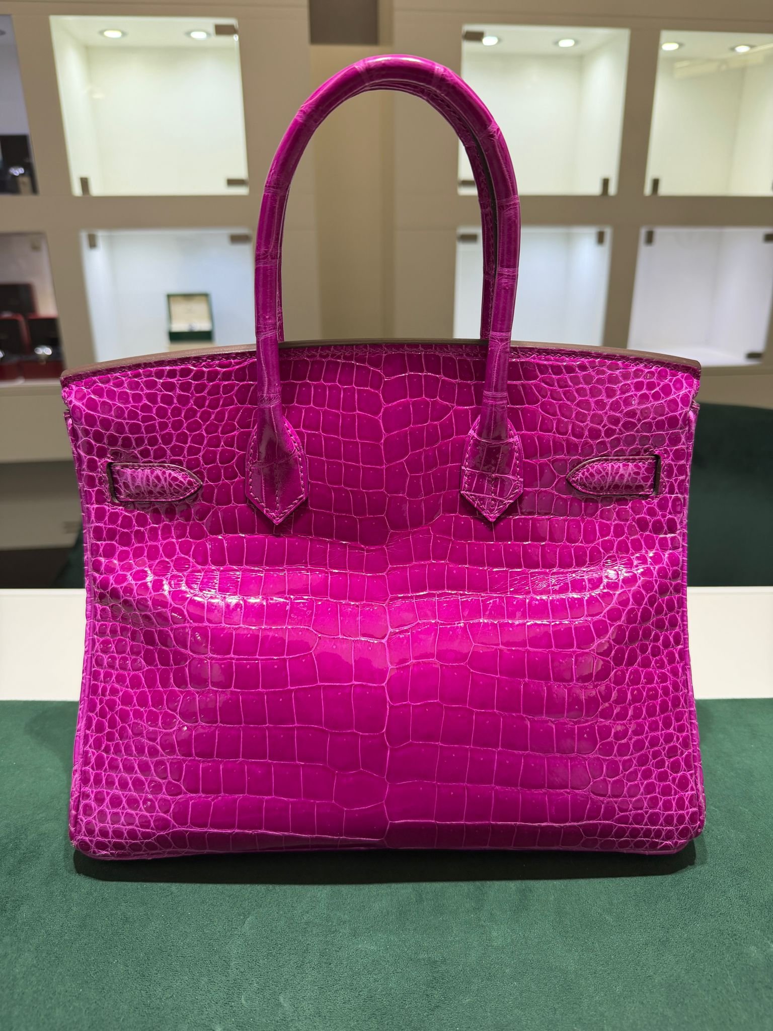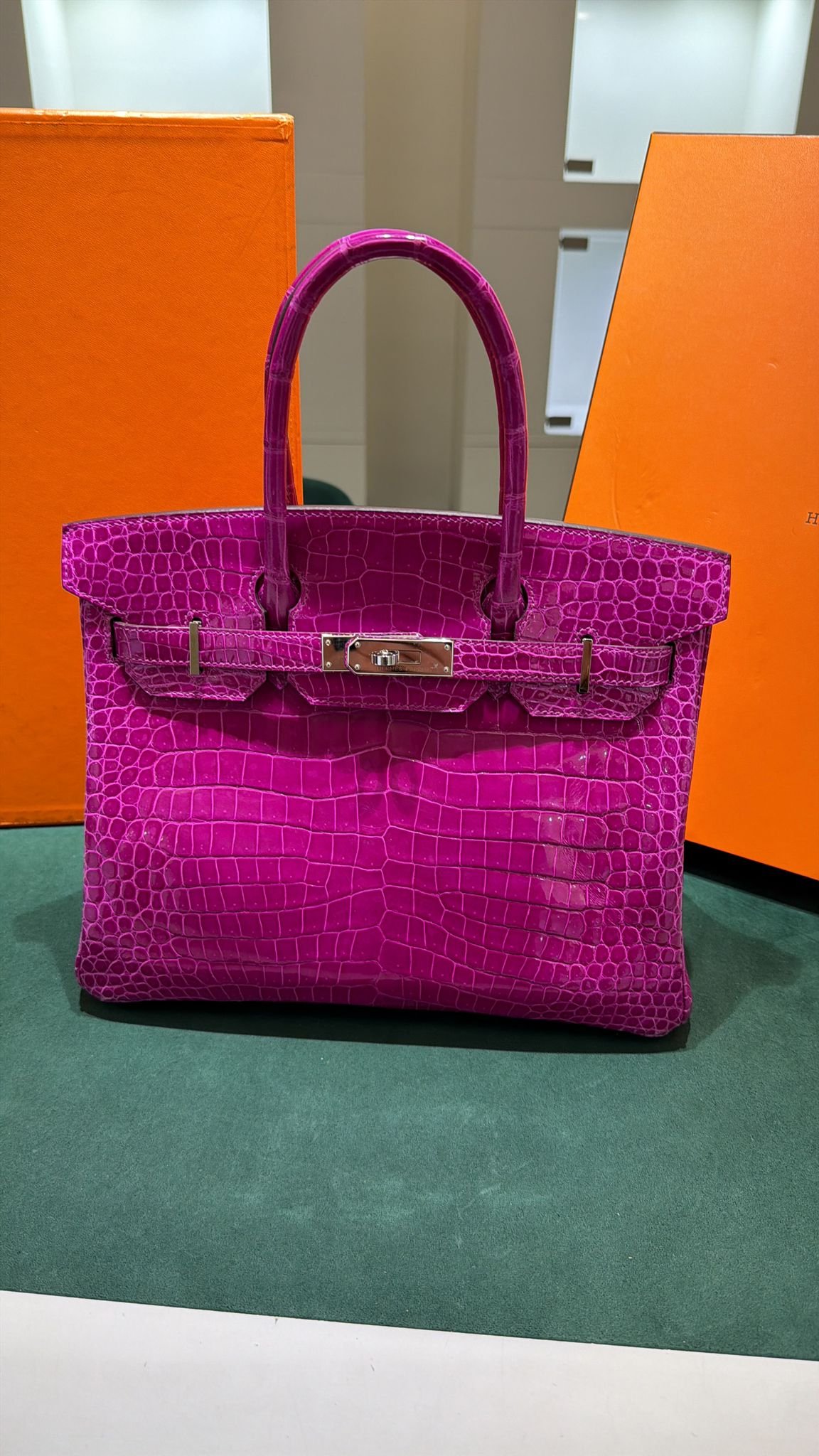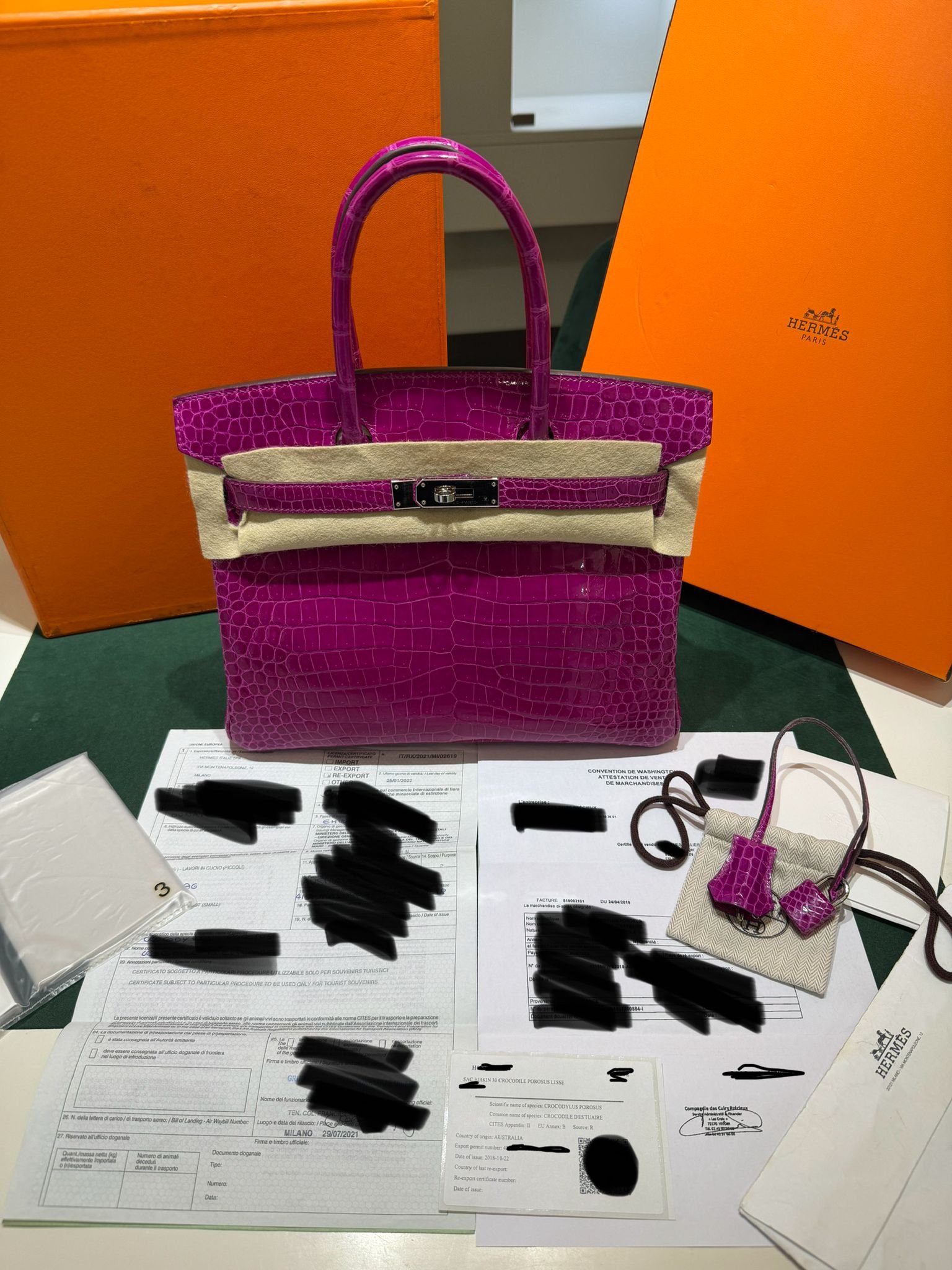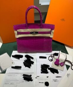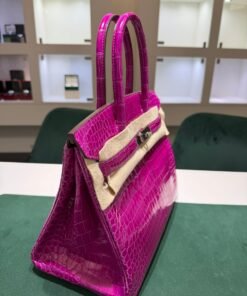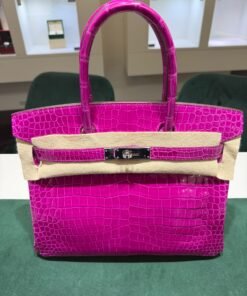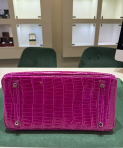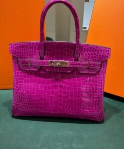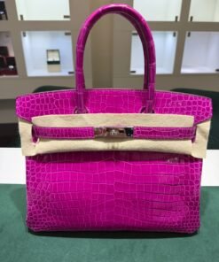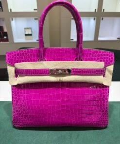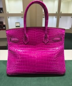 Hermès Birkin 30 CROCODYLUS POROSUS second hand fuxia del 2022 full set top condition hardware in palladio