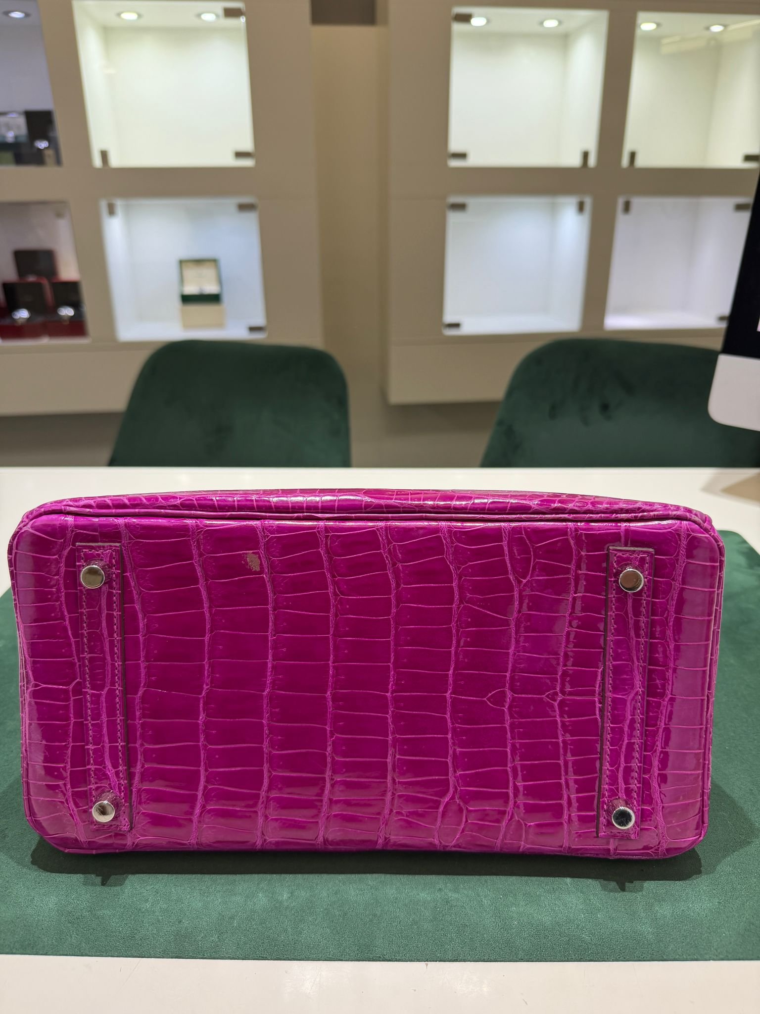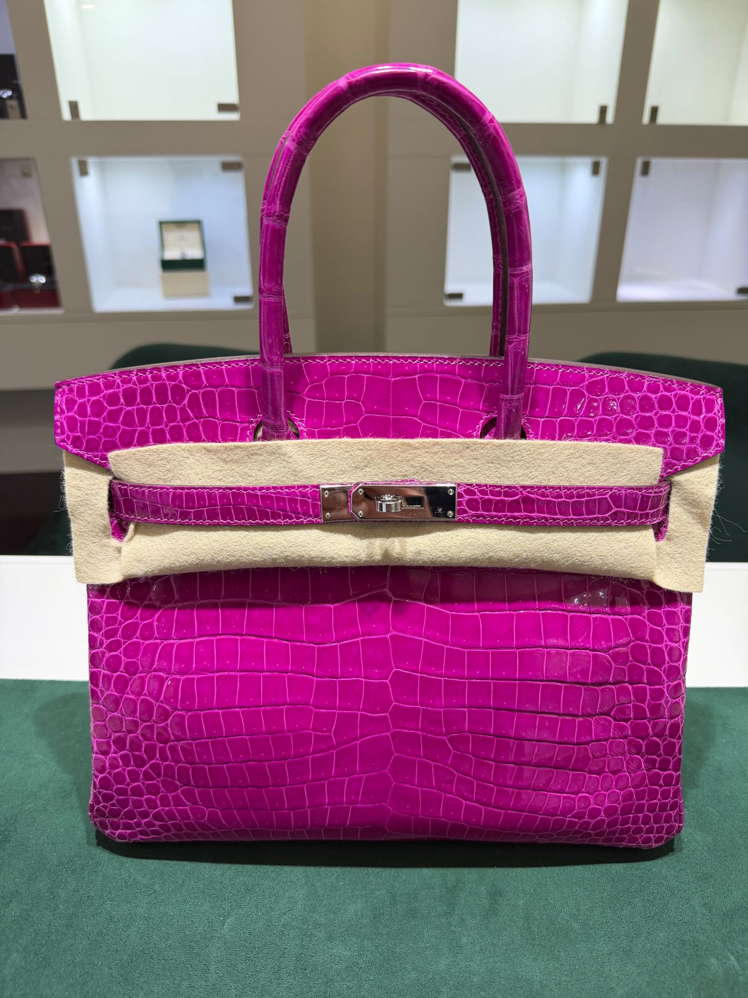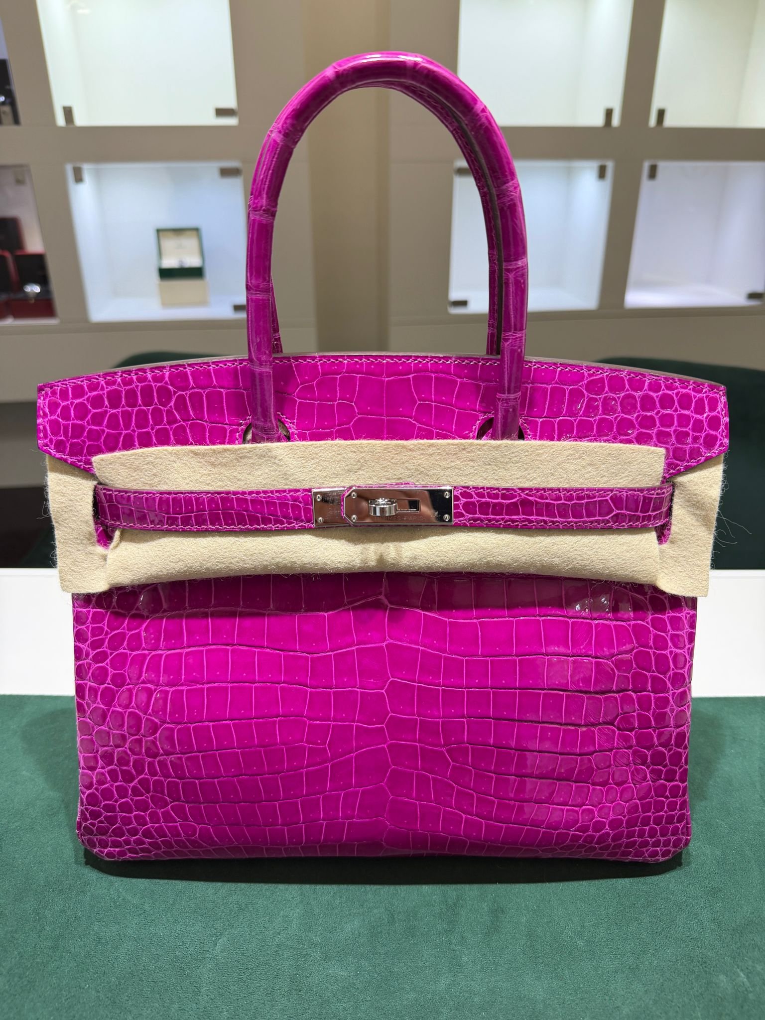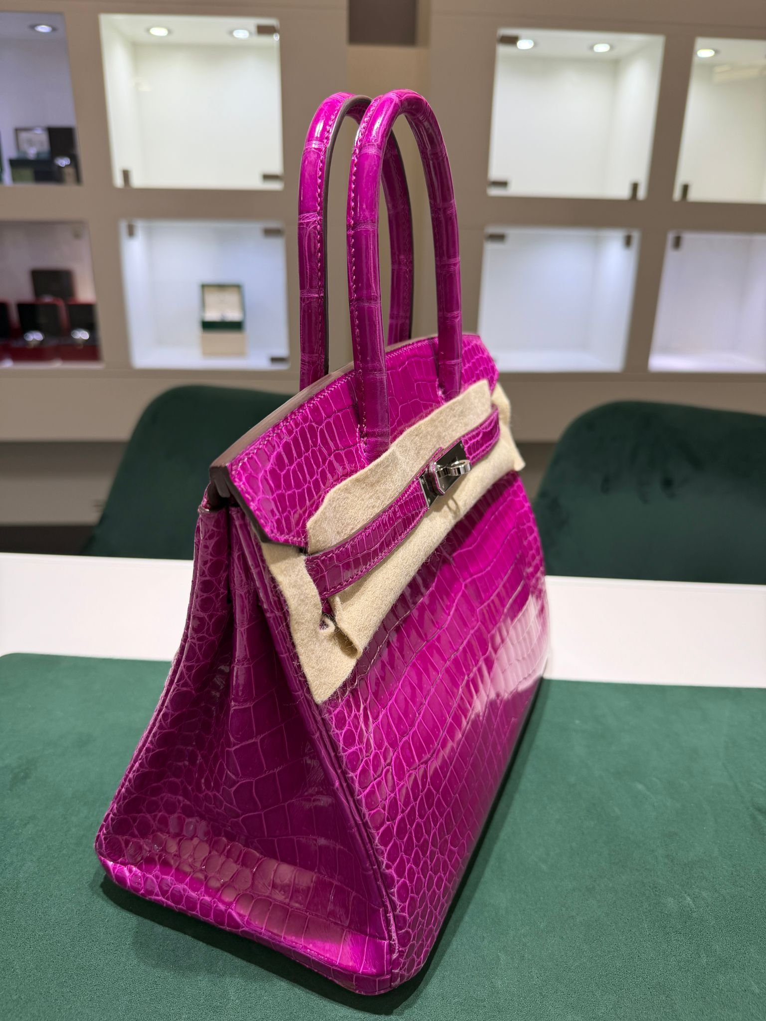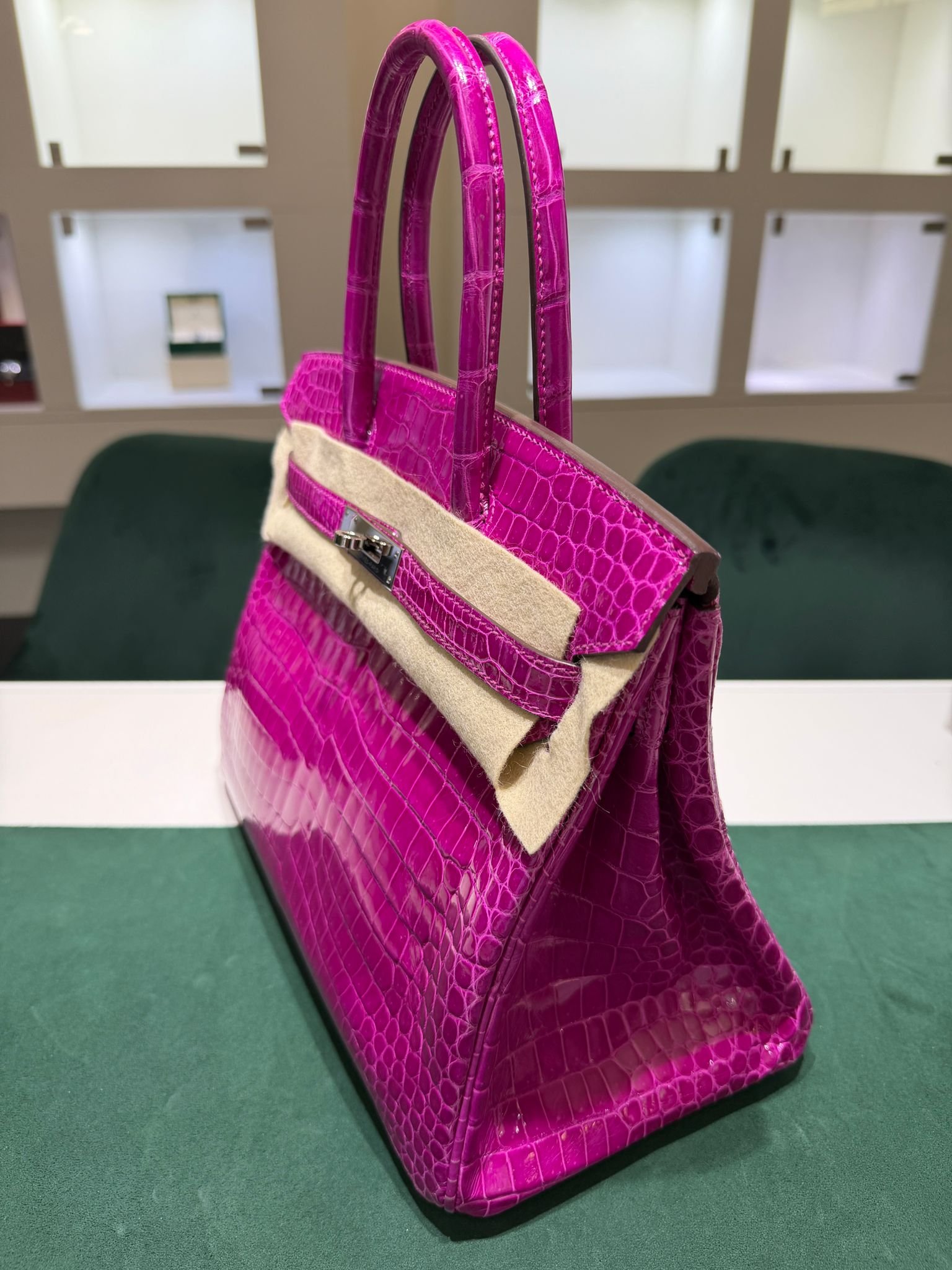 Hermès Birkin 30 CROCODYLUS POROSUS second hand fuxia del 2022 full set top condition hardware in palladio