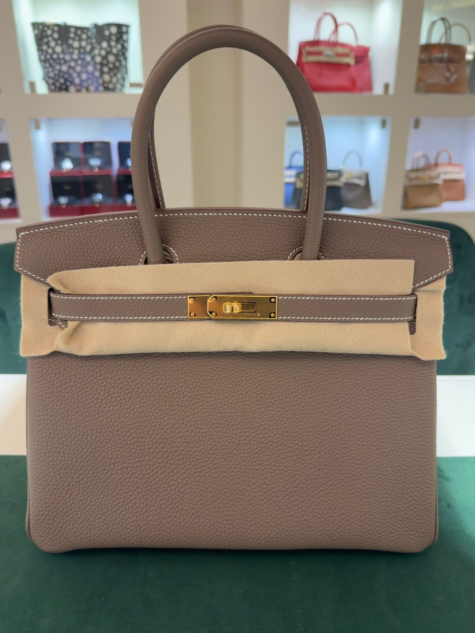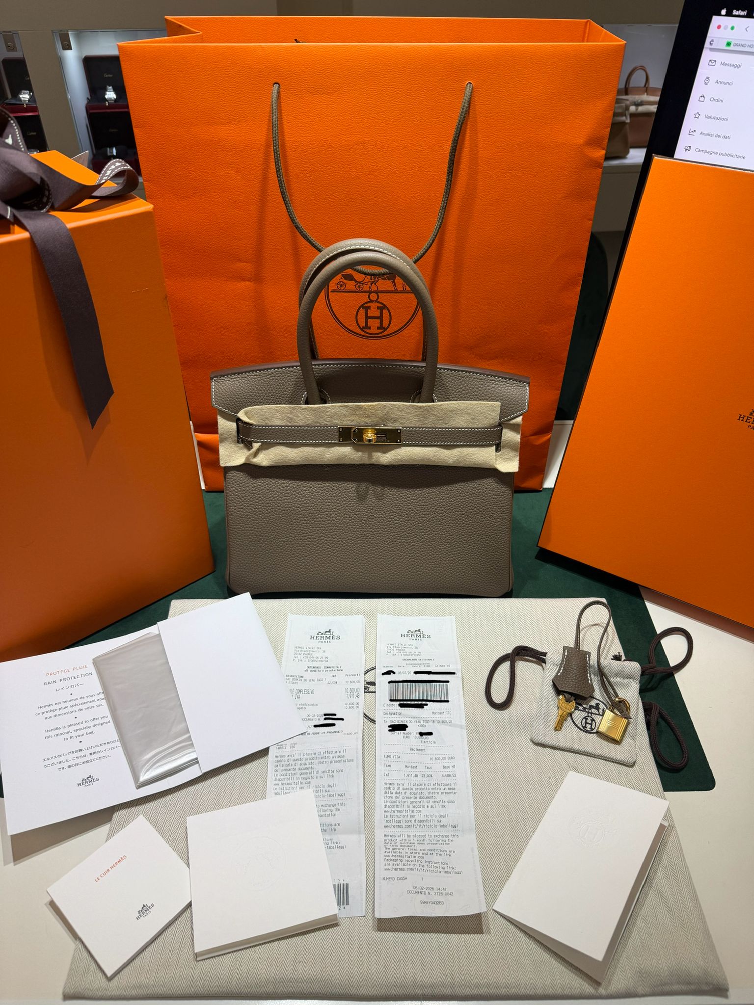 Hermès Birkin 30 retourne veau togo Etoupe stampa K NUOVA Febbraio 2026 colore Etoupe hardware dorato full set con scontrino ufficiale Hermès pellicole stickers ovunque .