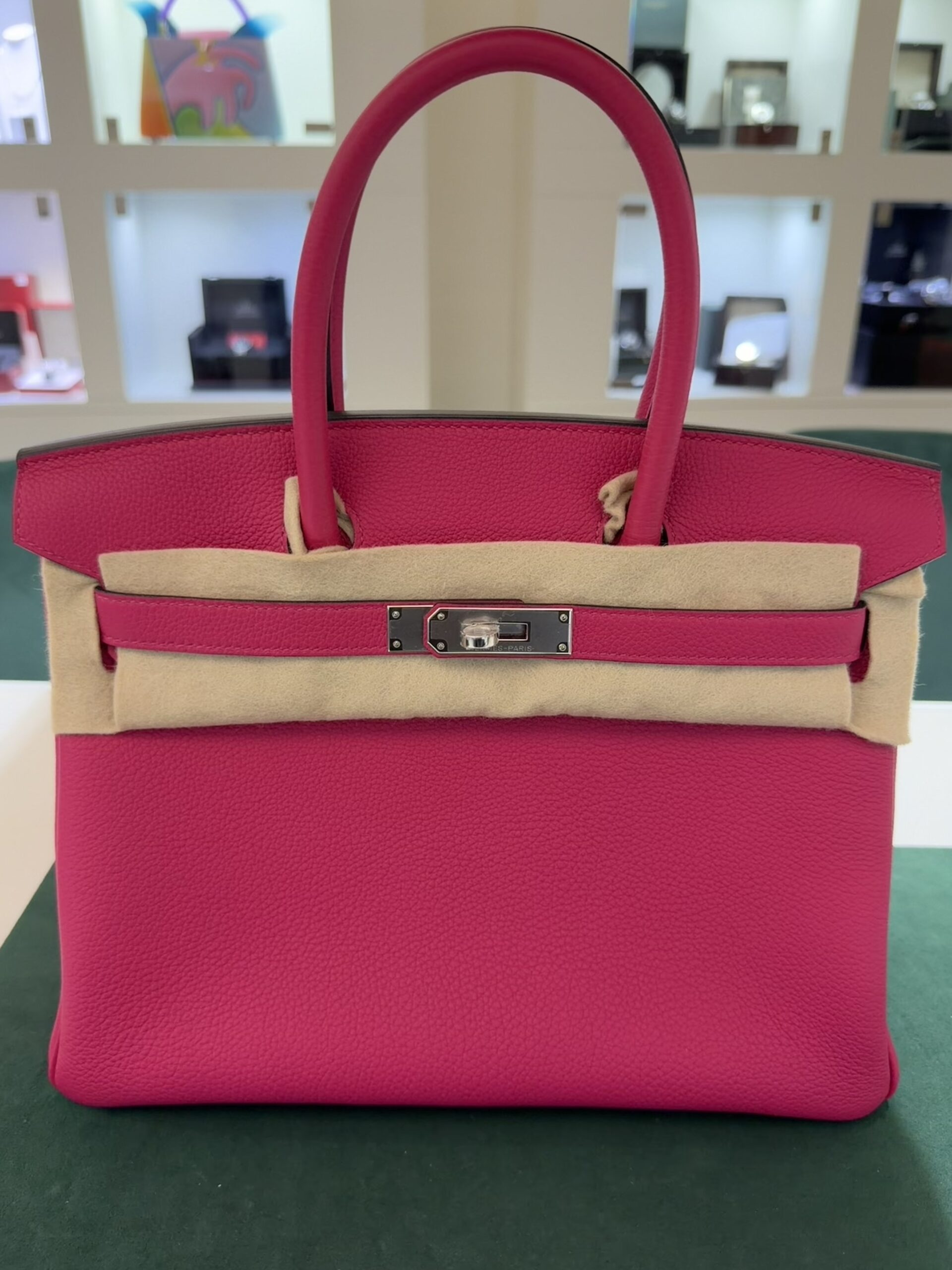 Hermès Birkin 30 retourne veau togo stampa seriale K Nuova 2025 color ( rose mexico ) fuxia grigio hardware palladio full set con scontrino ufficiale Hermès pellicole stickers ovunque .