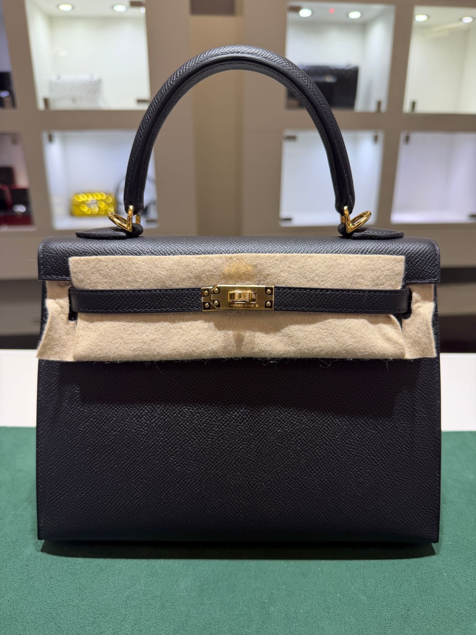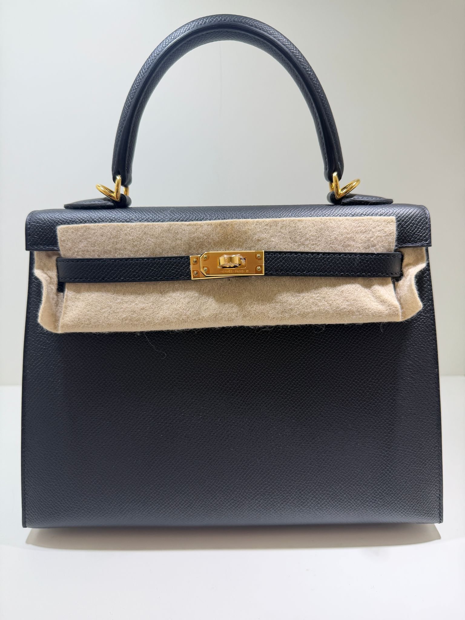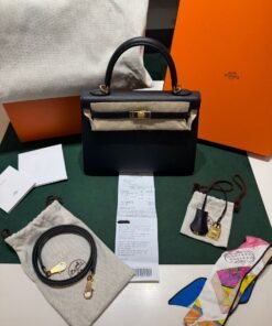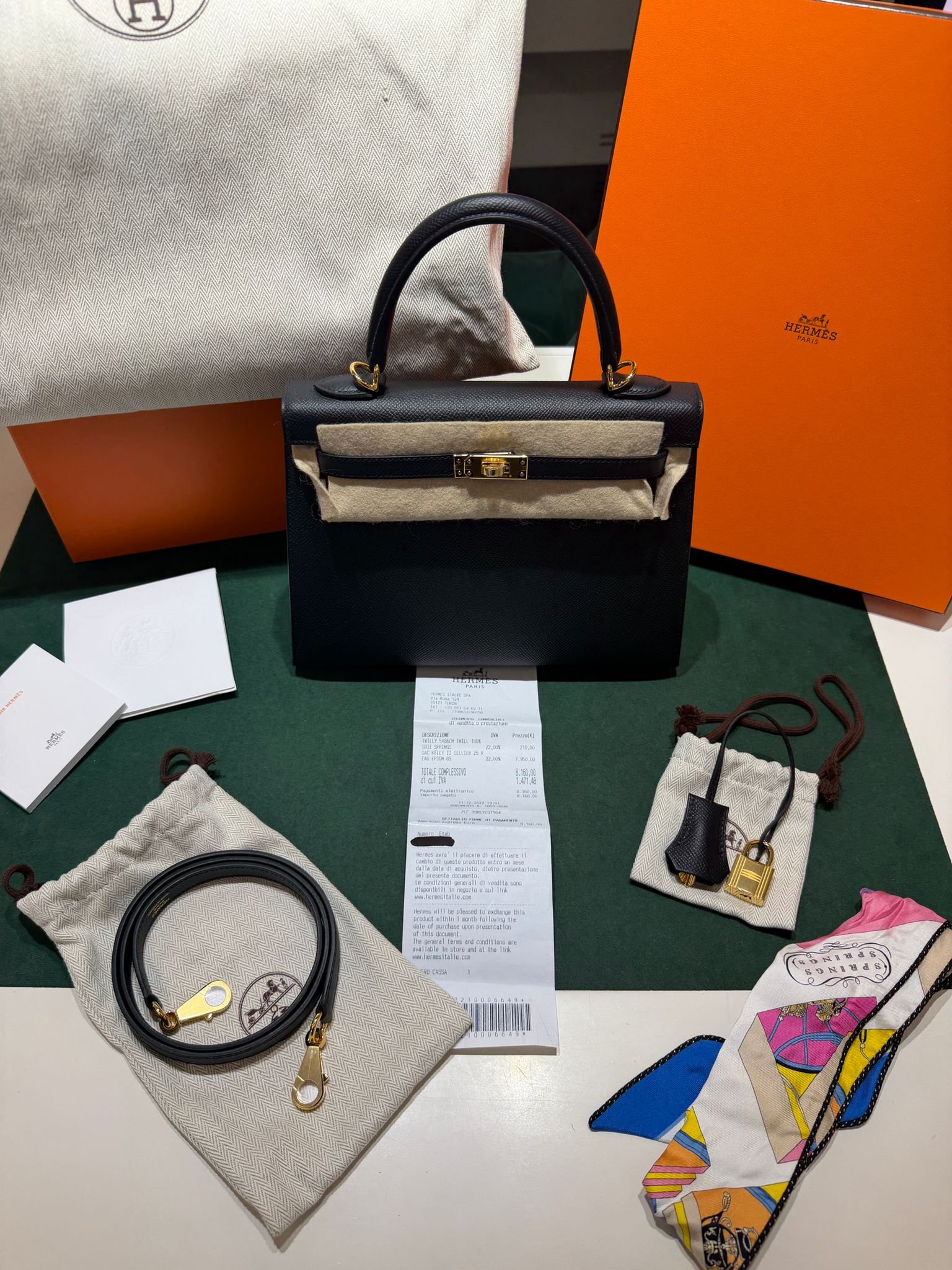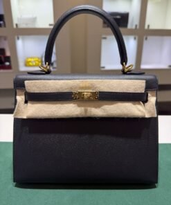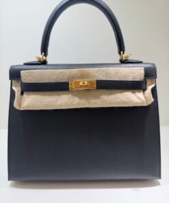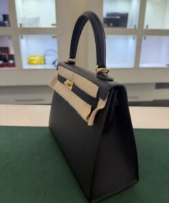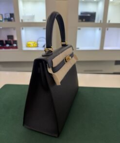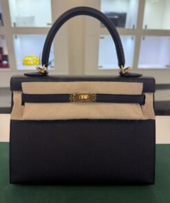 Hermès Kelly 25 sellier Nuova 2022 stampa U in pelle epsom colore Nero noir con hardware dorato con tutti gli adesivi di protezione dell’imballaggio