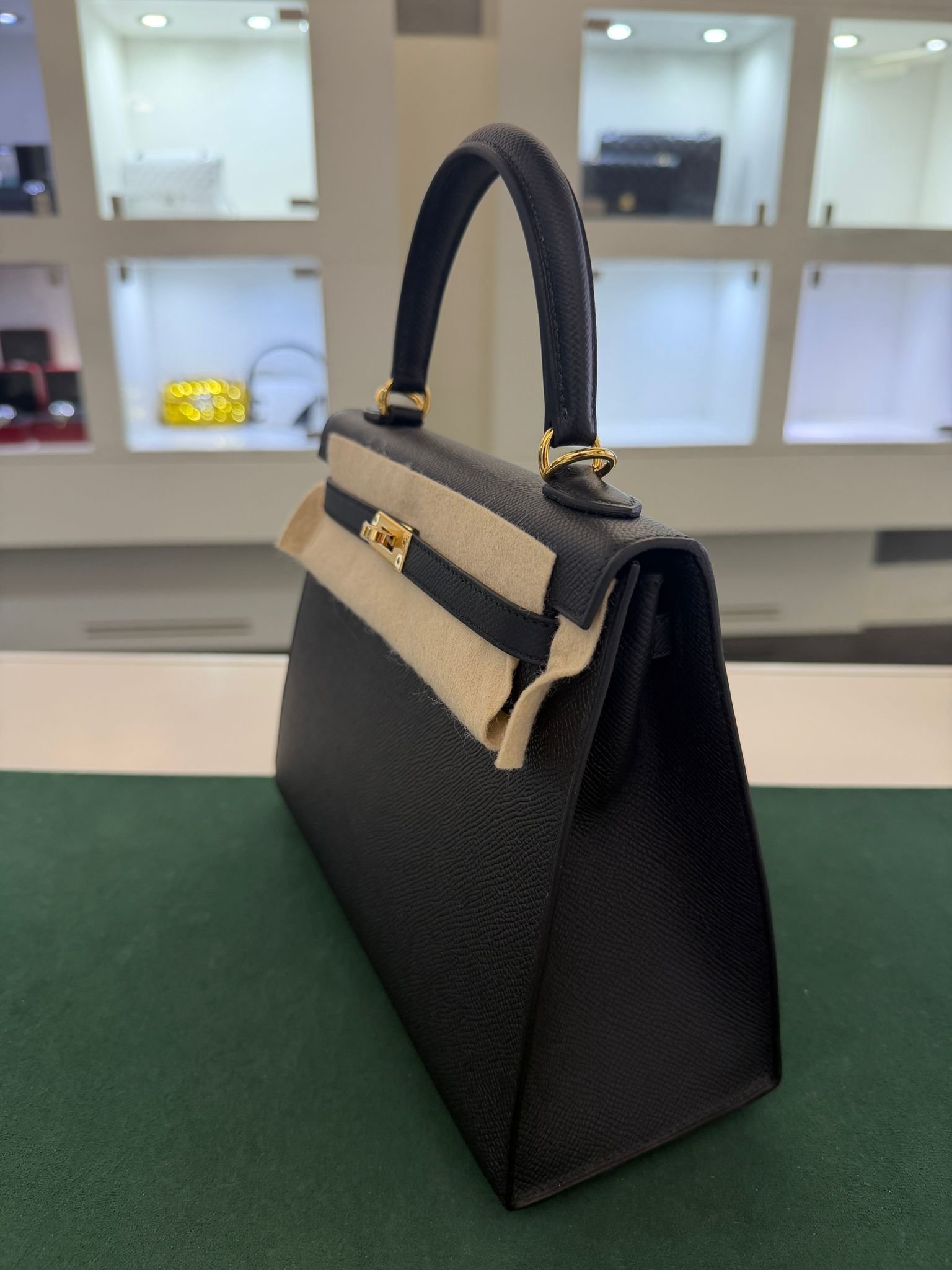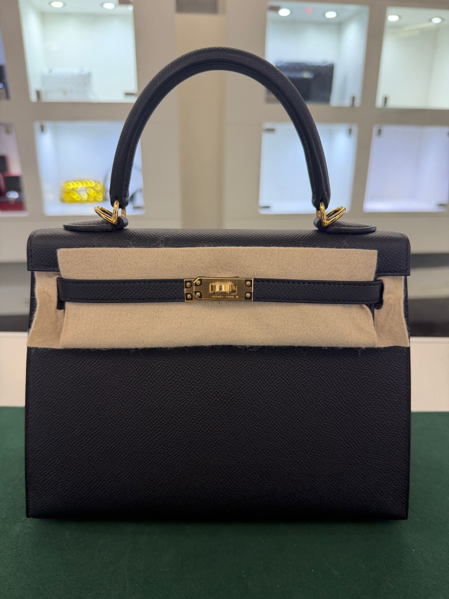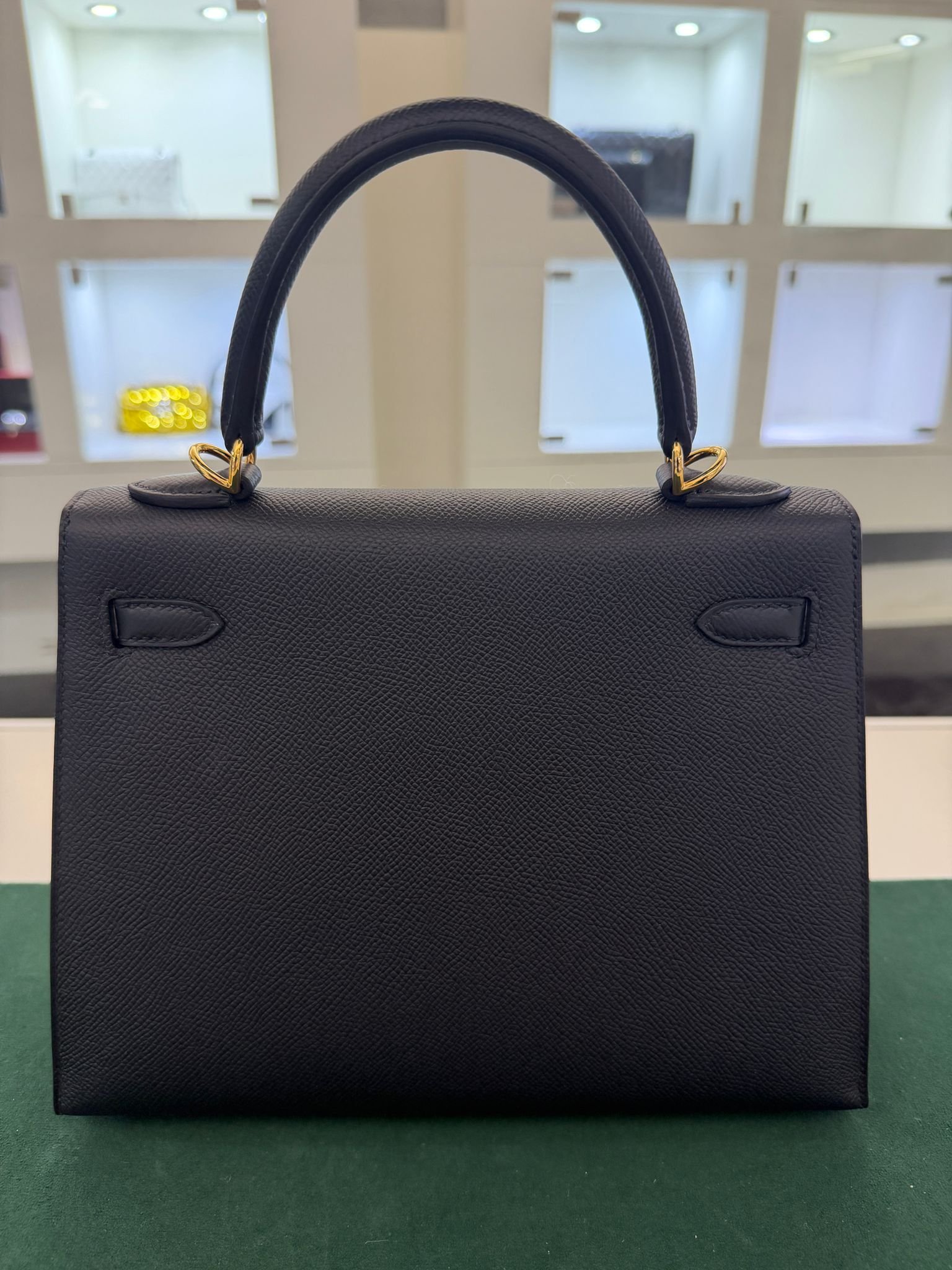 Hermès Kelly 25 sellier Nuova 2022 stampa U in pelle epsom colore Nero noir con hardware dorato con tutti gli adesivi di protezione dell’imballaggio