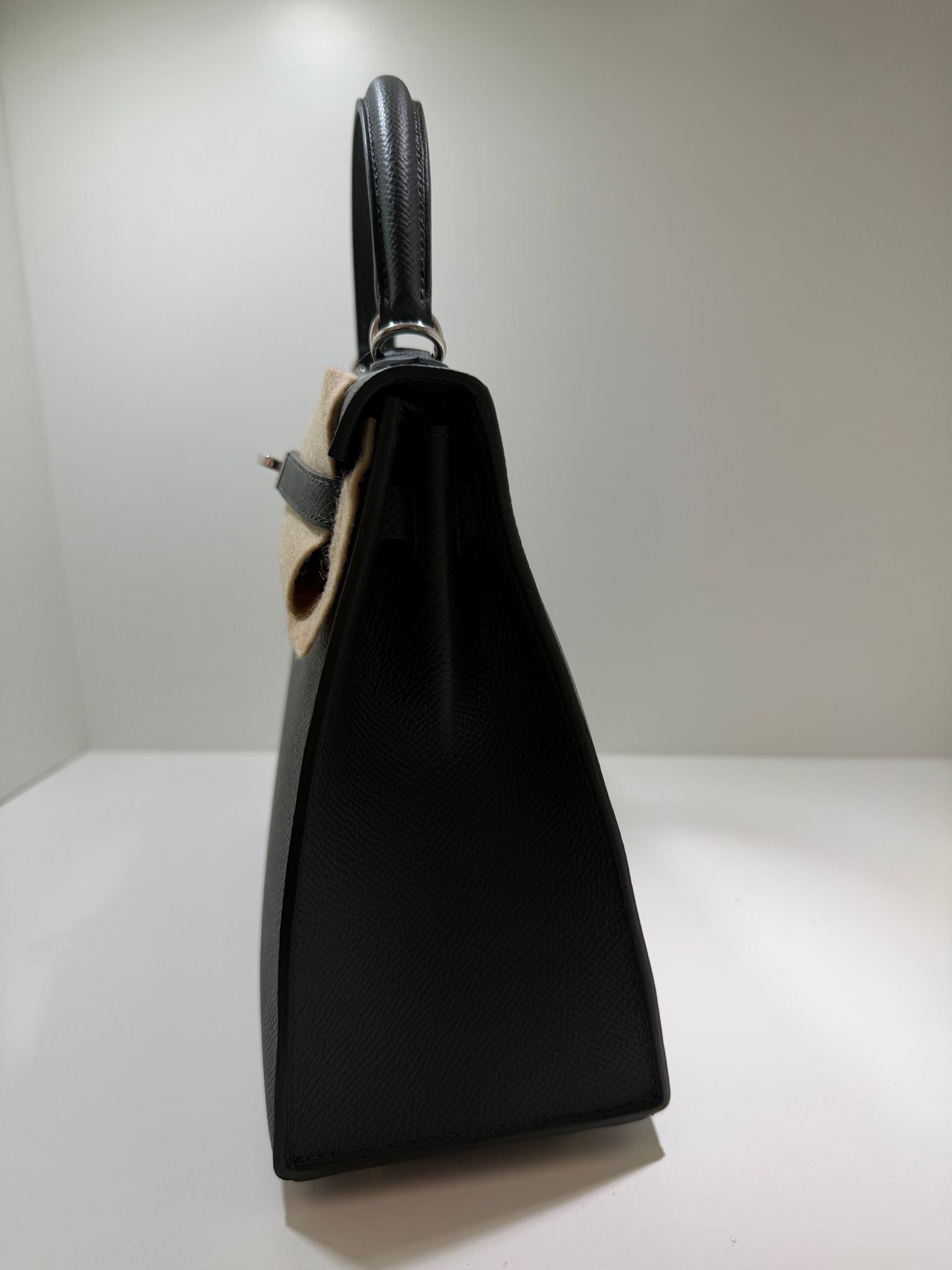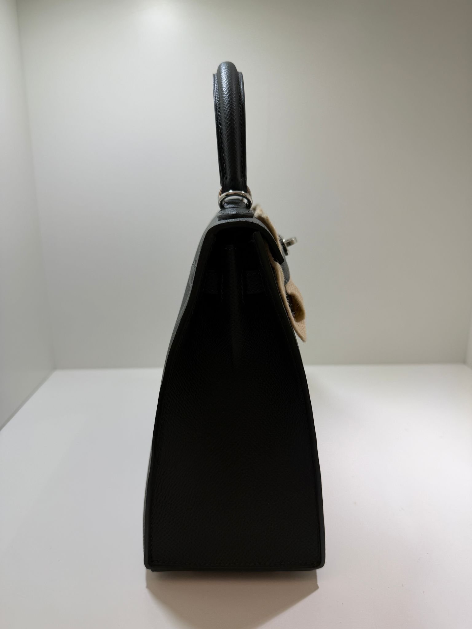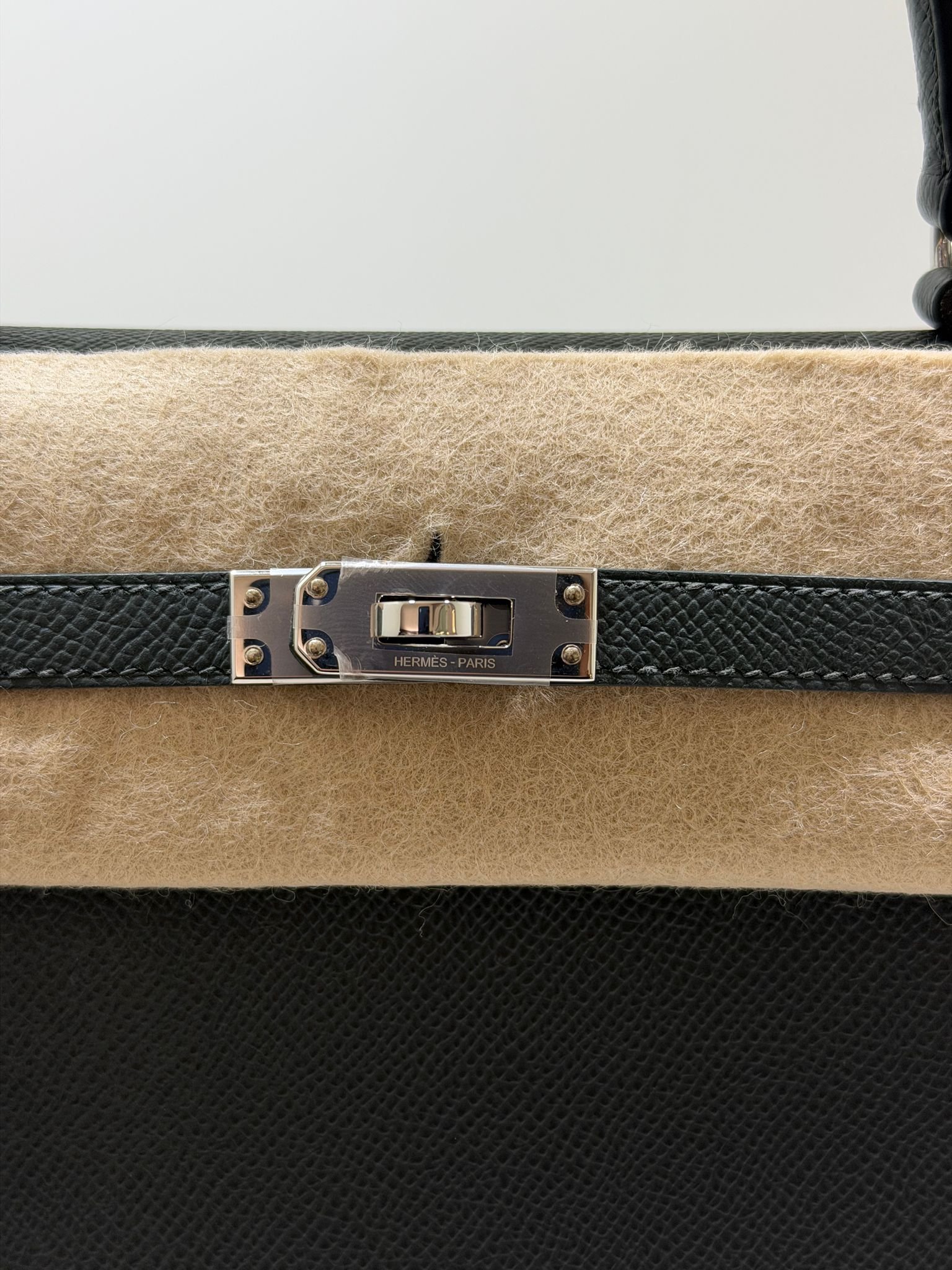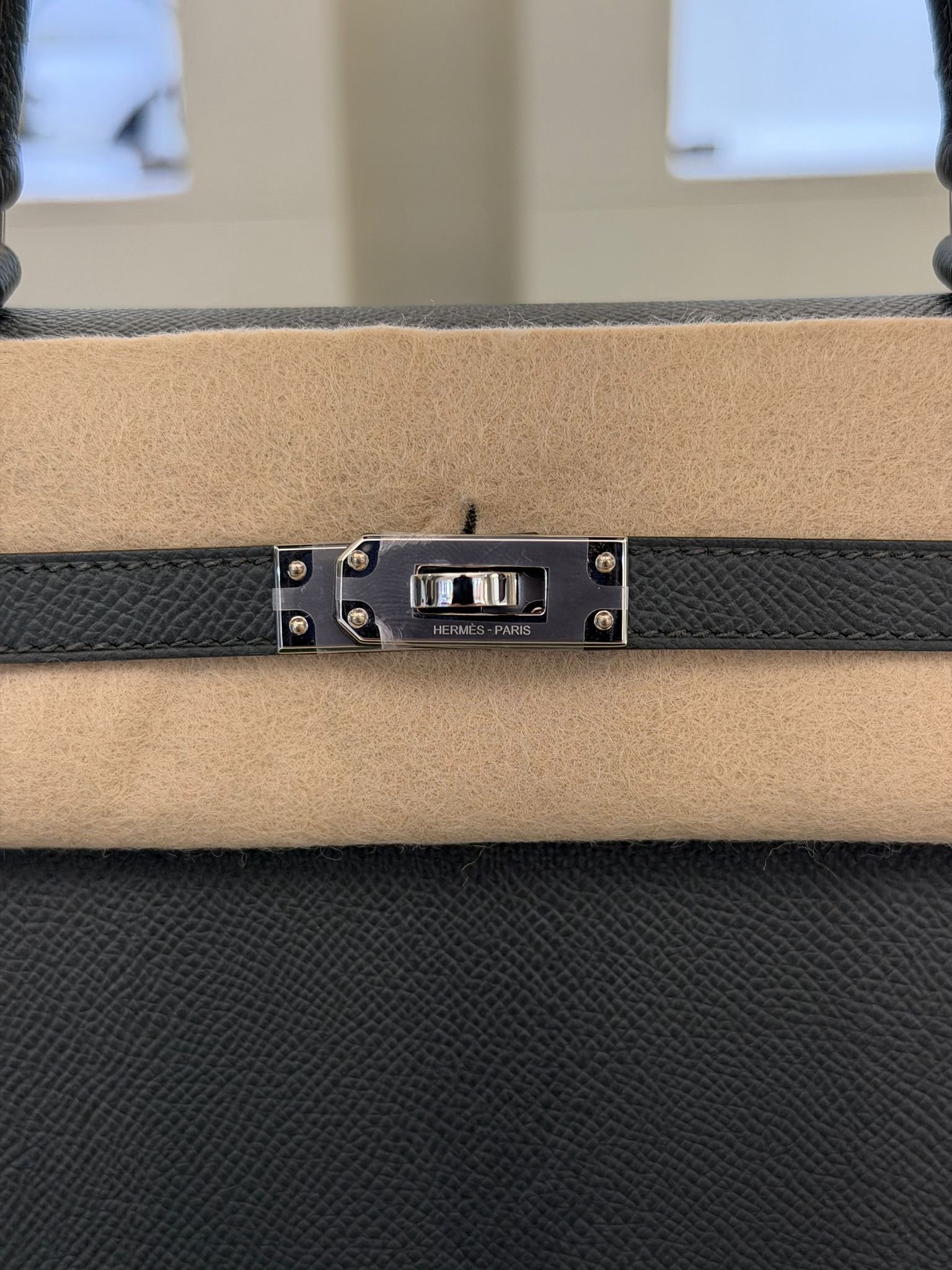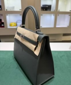 Hermès Kelly 25 Sellier Nuova 2026 stampa G in pelle Epsom colore vert mangrove con hardware palladio con tutti gli adesivi di protezione dell’imballaggio e dell’hardware.