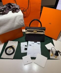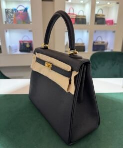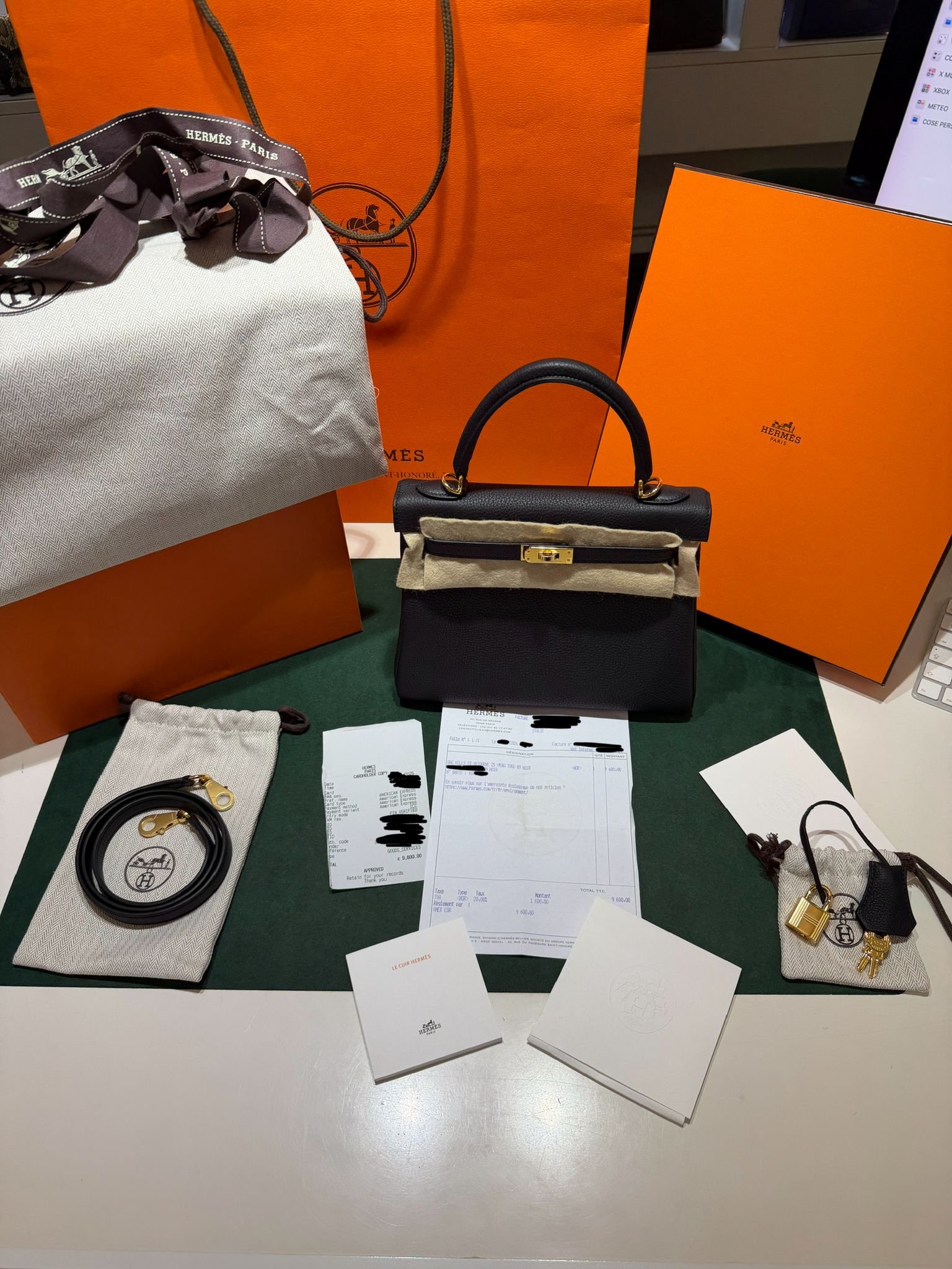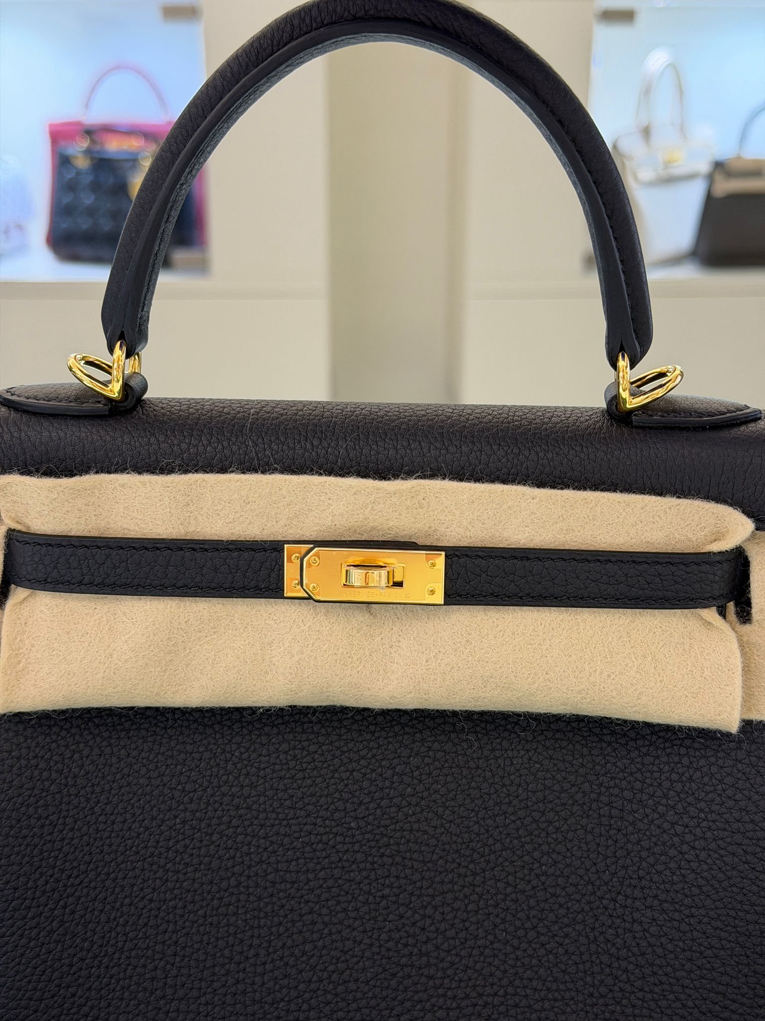 Hermès Kelly 25 retourne Nuova 2026 stampa K in pelle togo colore Nero noir con hardware dorato con tutti gli adesivi di protezione dell’imballaggio e dell’hardware.