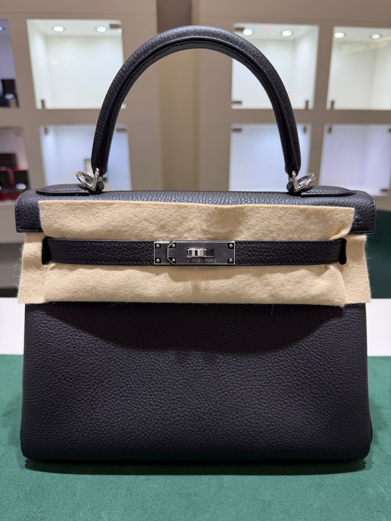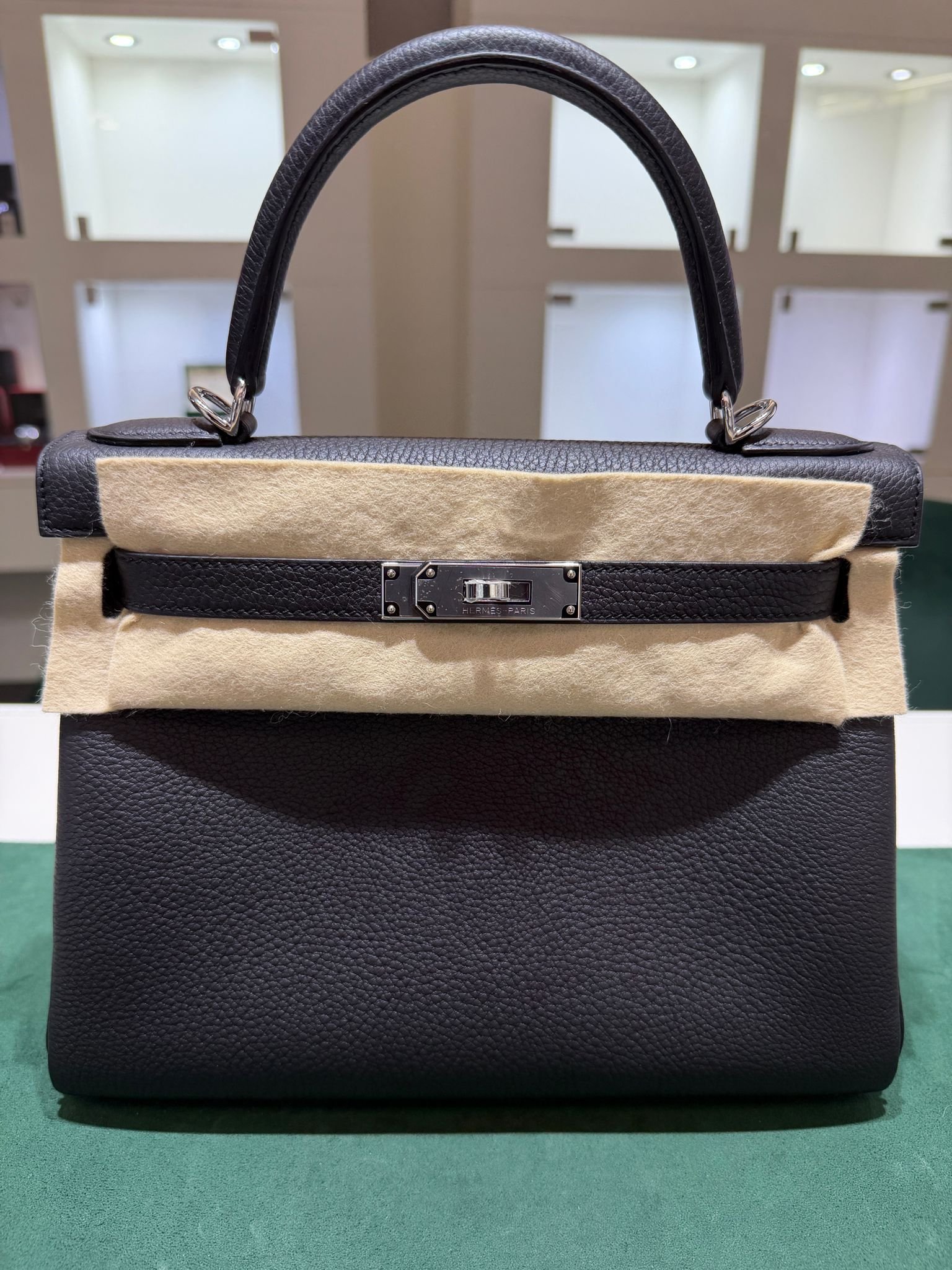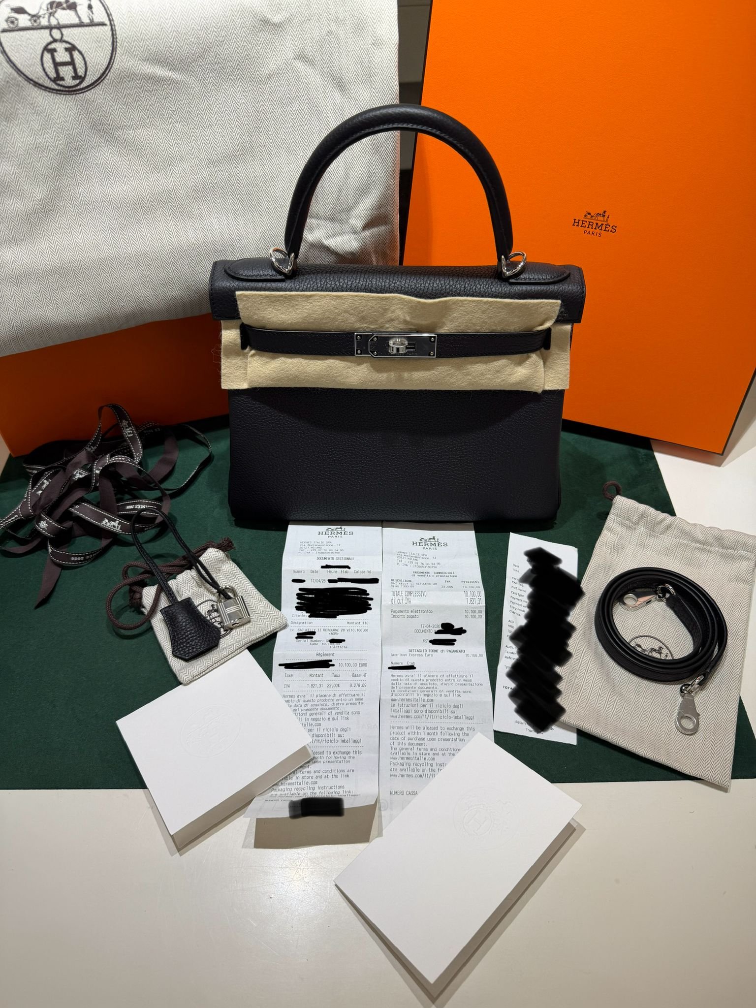 Hermès Kelly 28 retourne NUOVA 2026 seriale G (colore nero) pellame Togo con hardware palladio con tutti gli adesivi di protezione dell’imballaggio e dell’hardware full set full pellicole full stickers