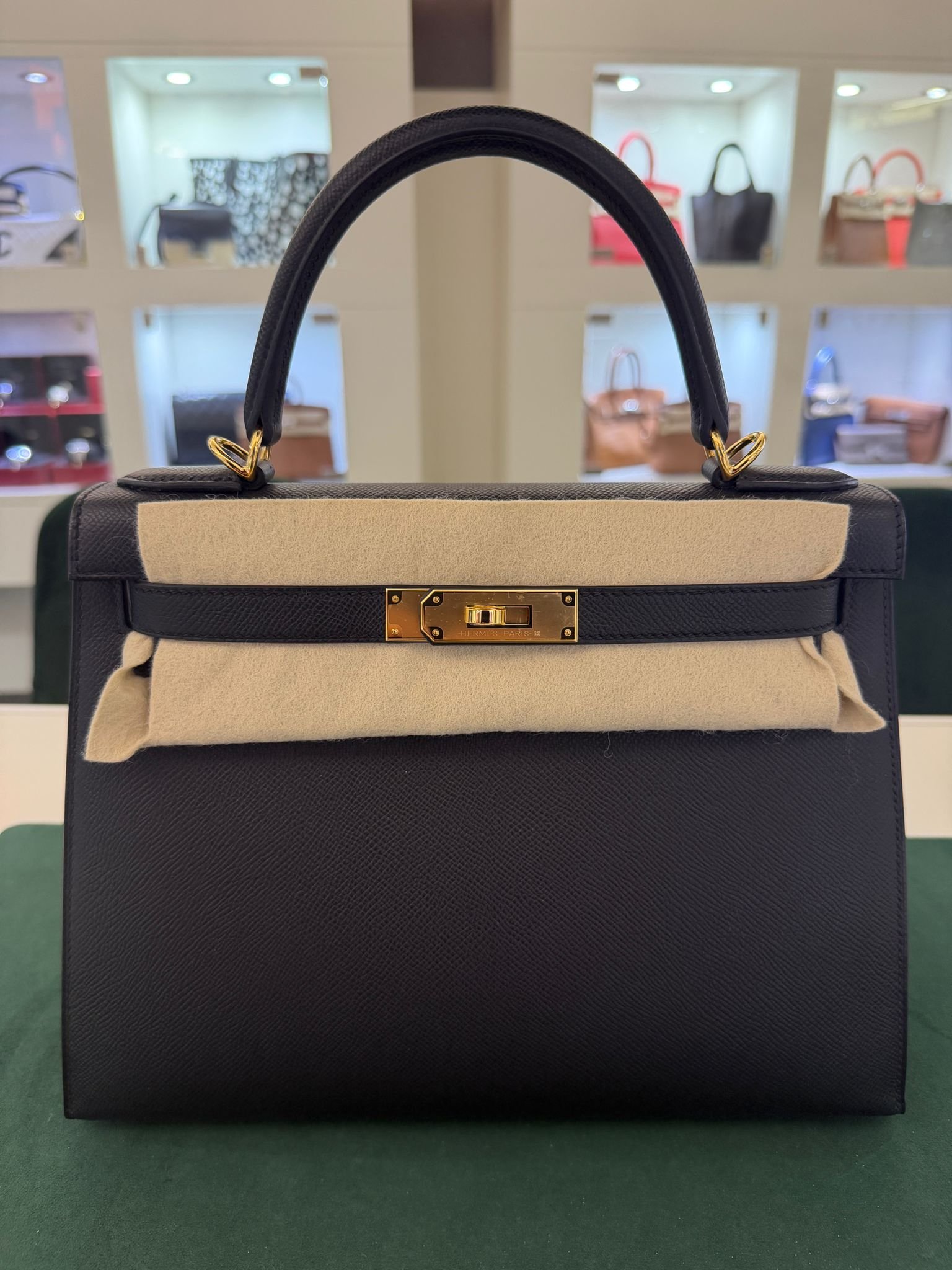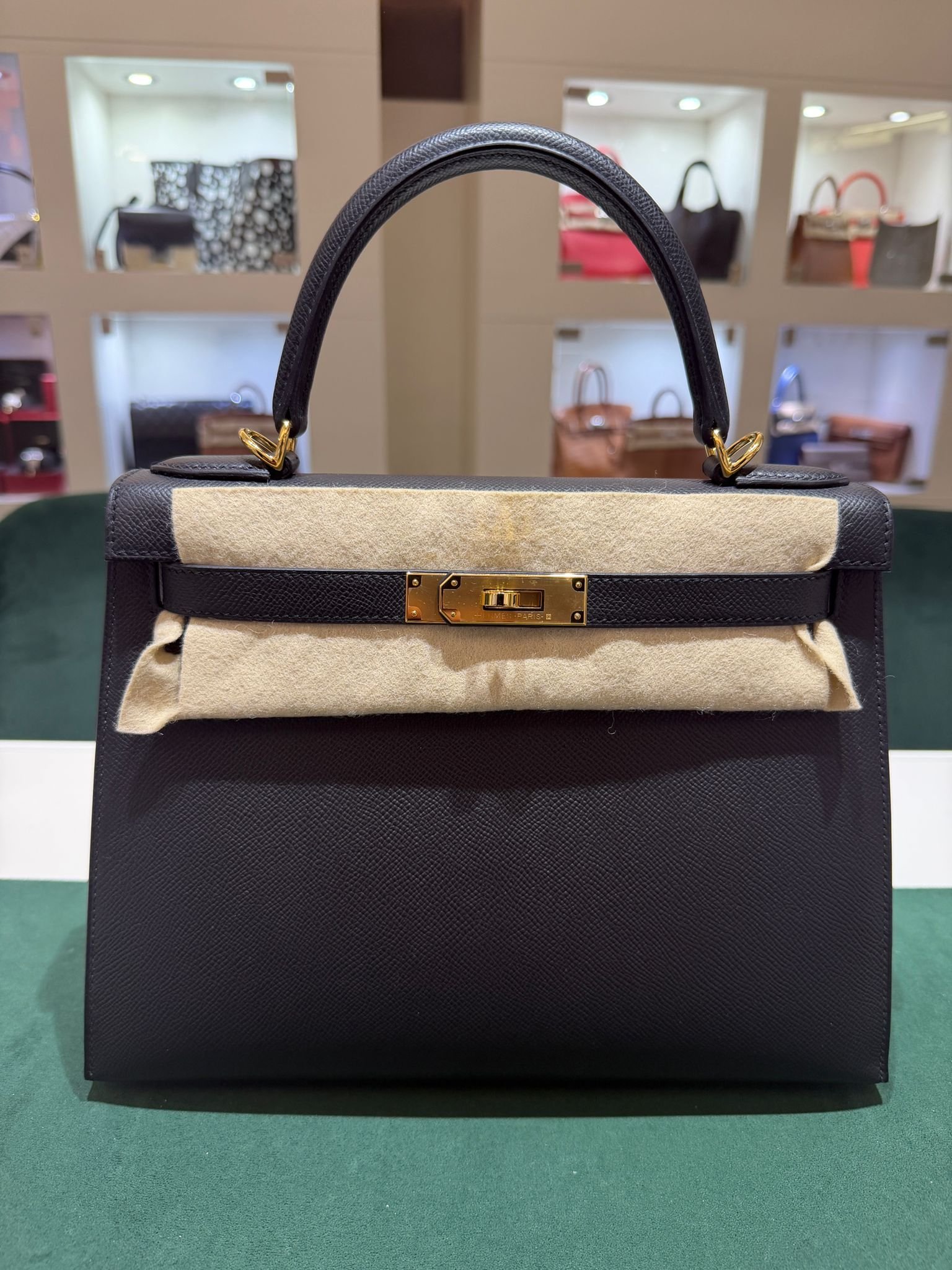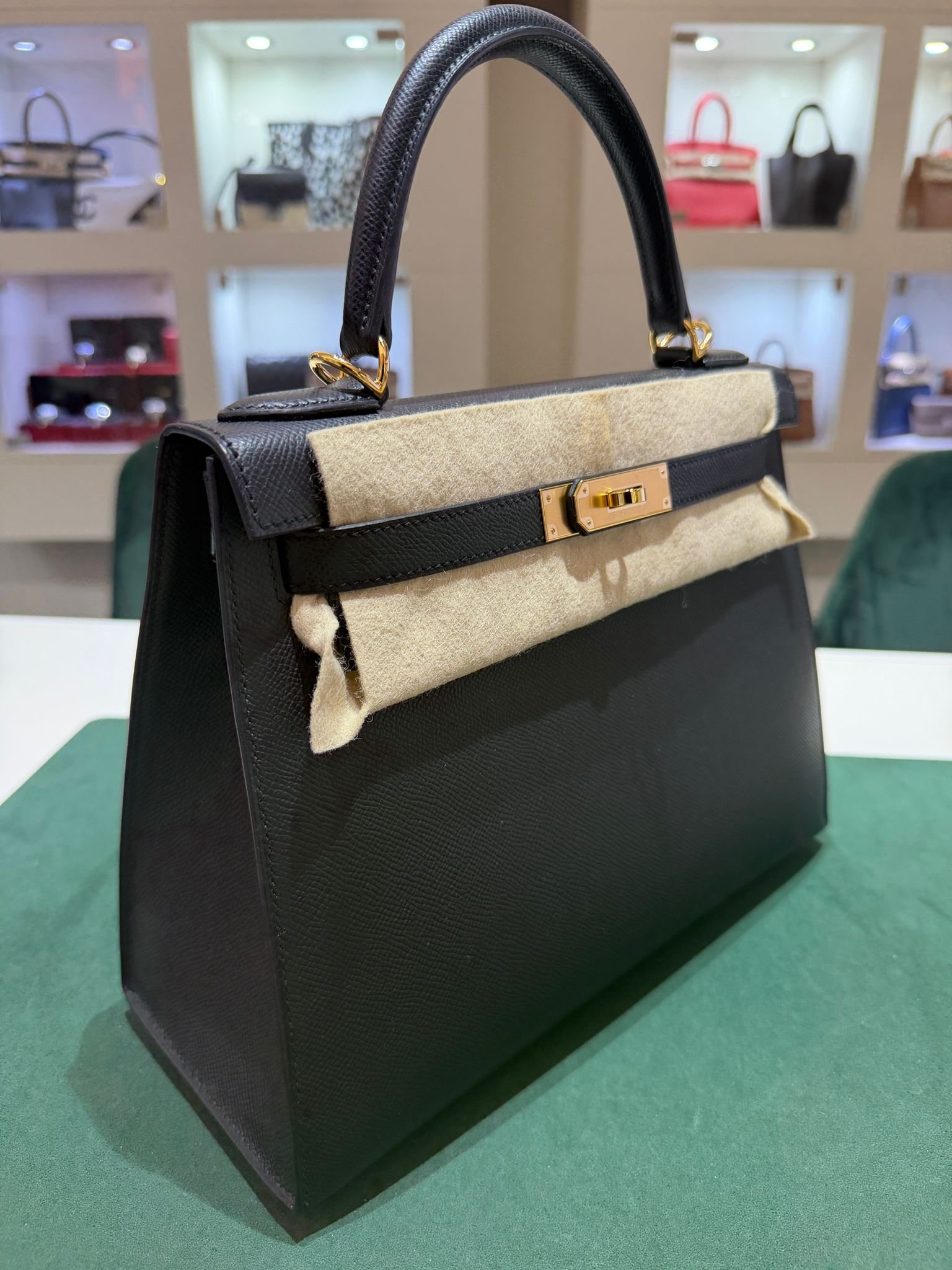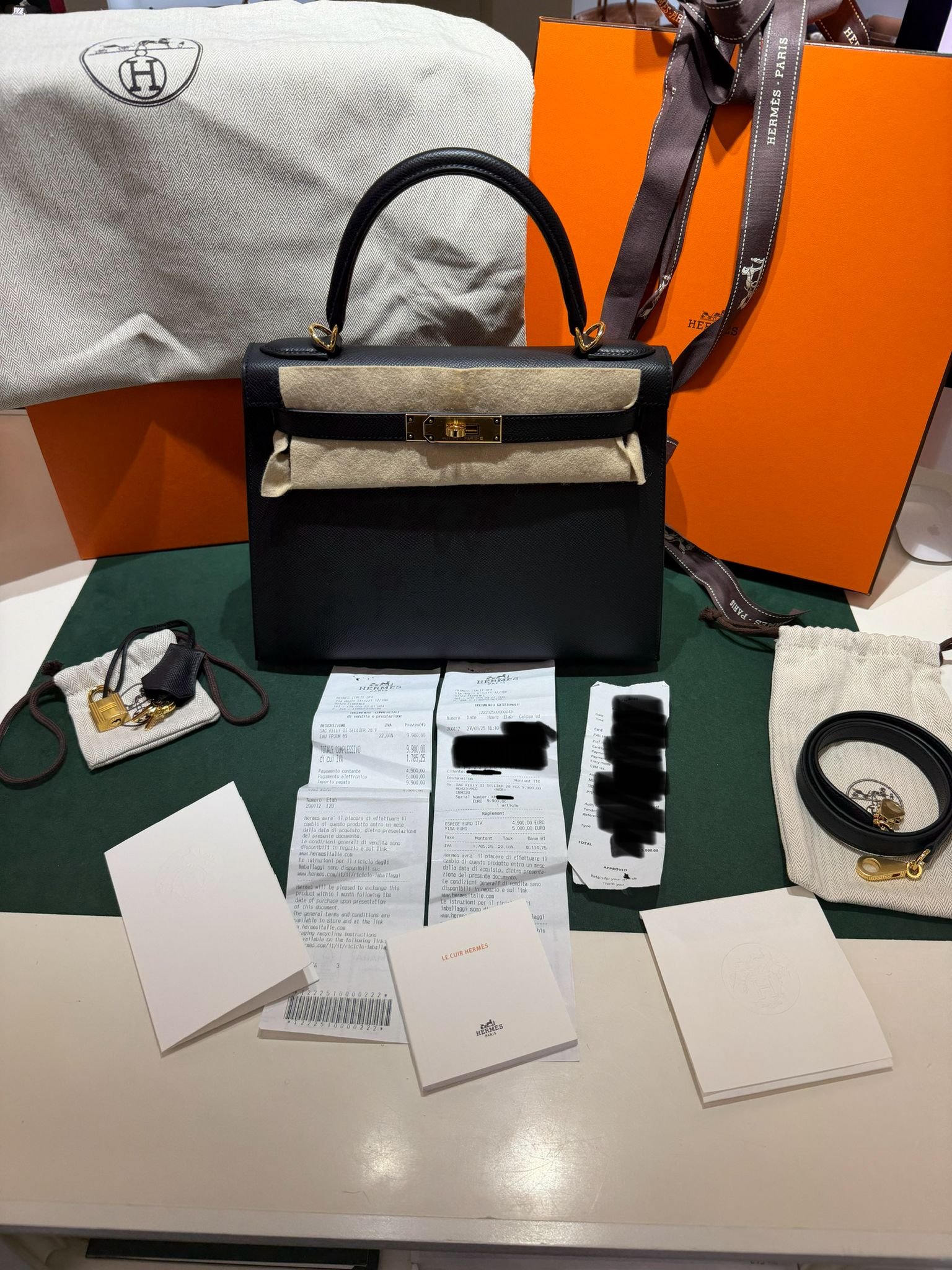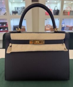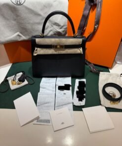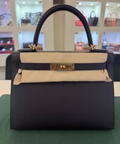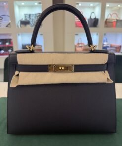 Hermès Kelly 28 Sellier NUOVA 2025 seriale K colore Nero pelle epsom con hardware dorato con tutti gli adesivi di protezione dell’imballaggio e dell’hardware full set full pellicole full stickers