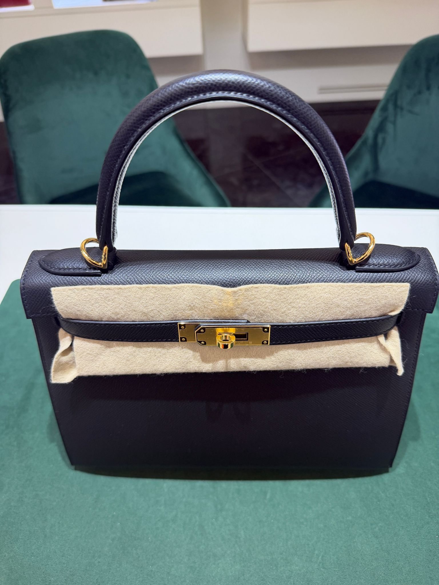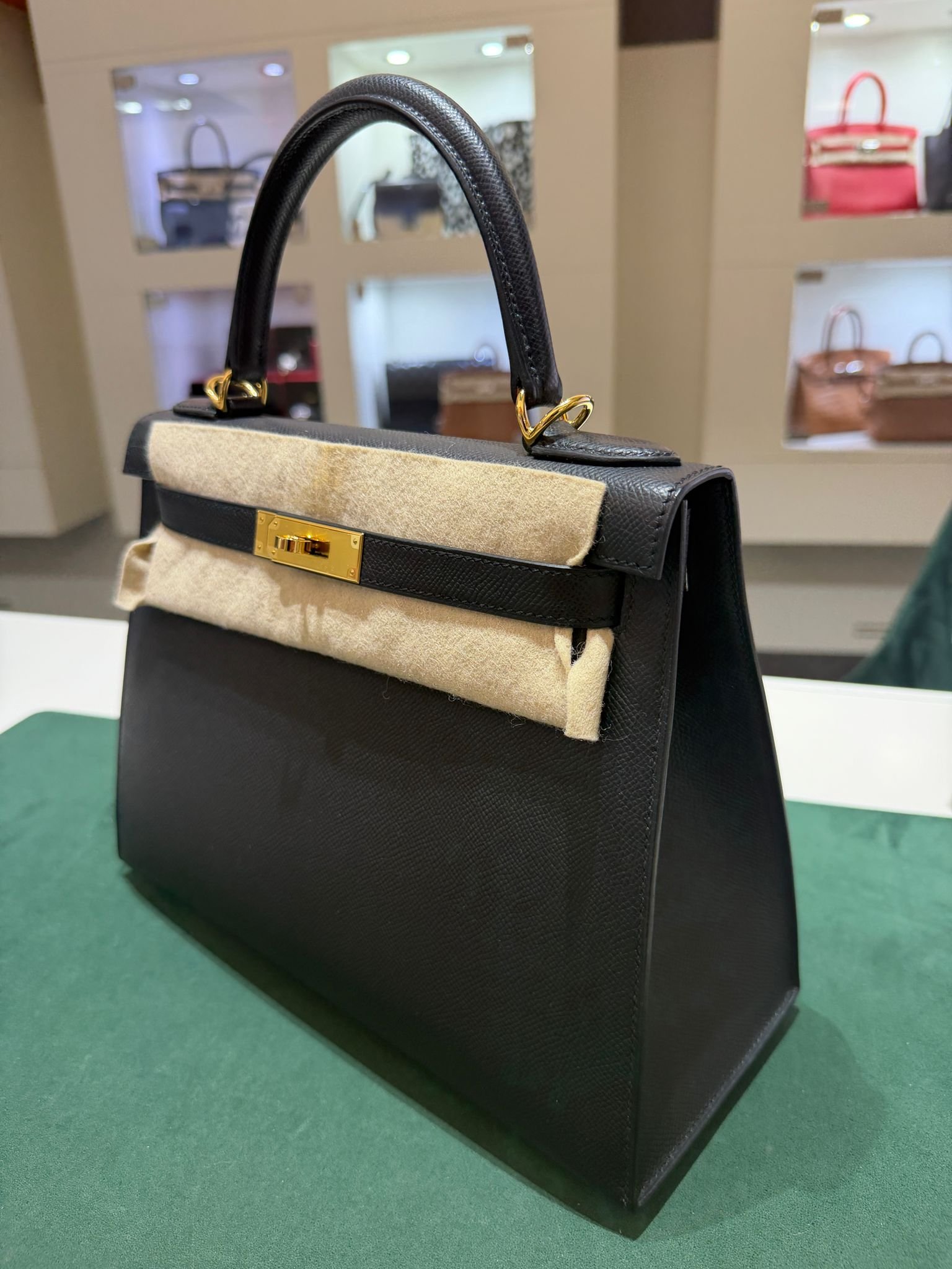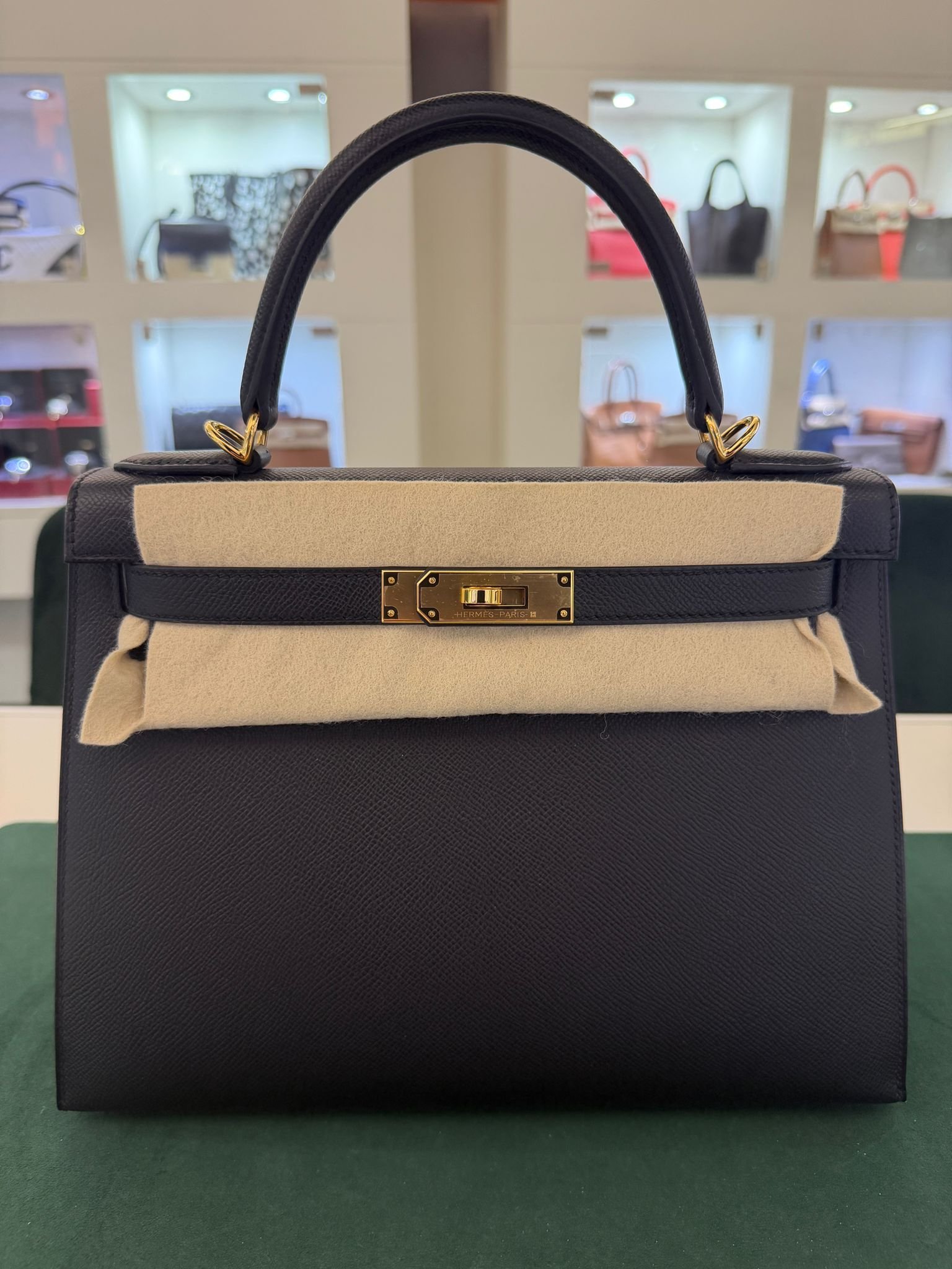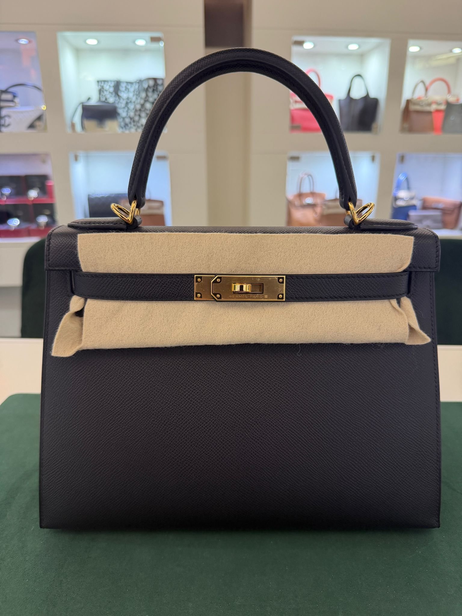 Hermès Kelly 28 Sellier NUOVA 2025 seriale K colore Nero pelle epsom con hardware dorato con tutti gli adesivi di protezione dell’imballaggio e dell’hardware full set full pellicole full stickers