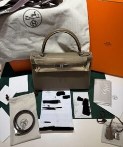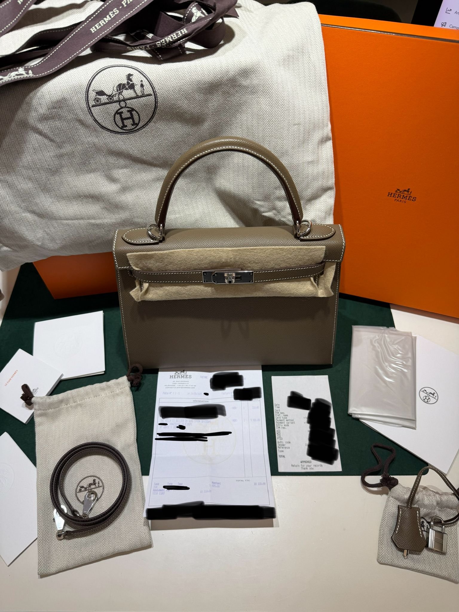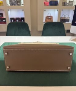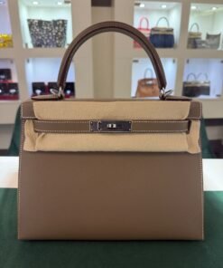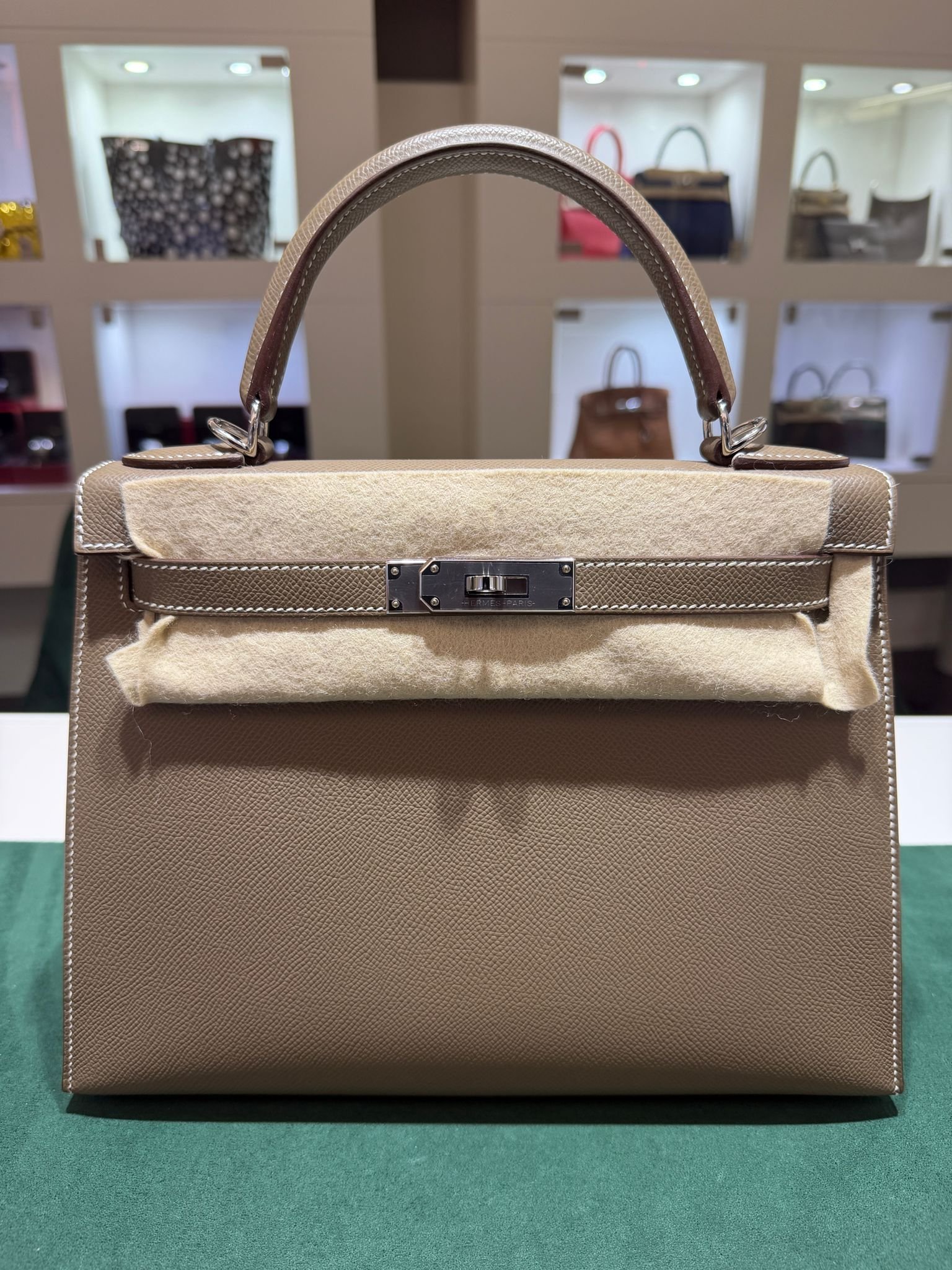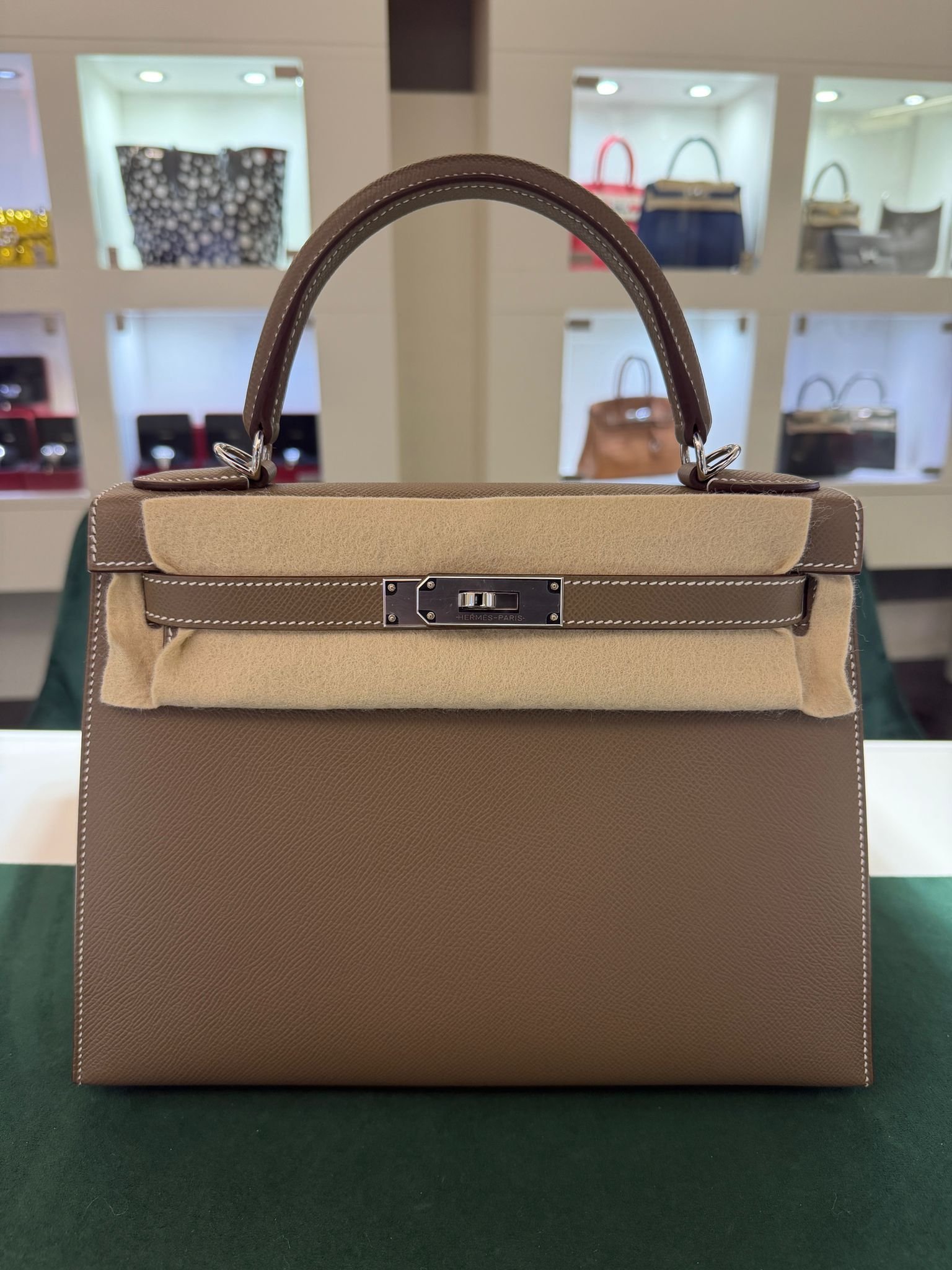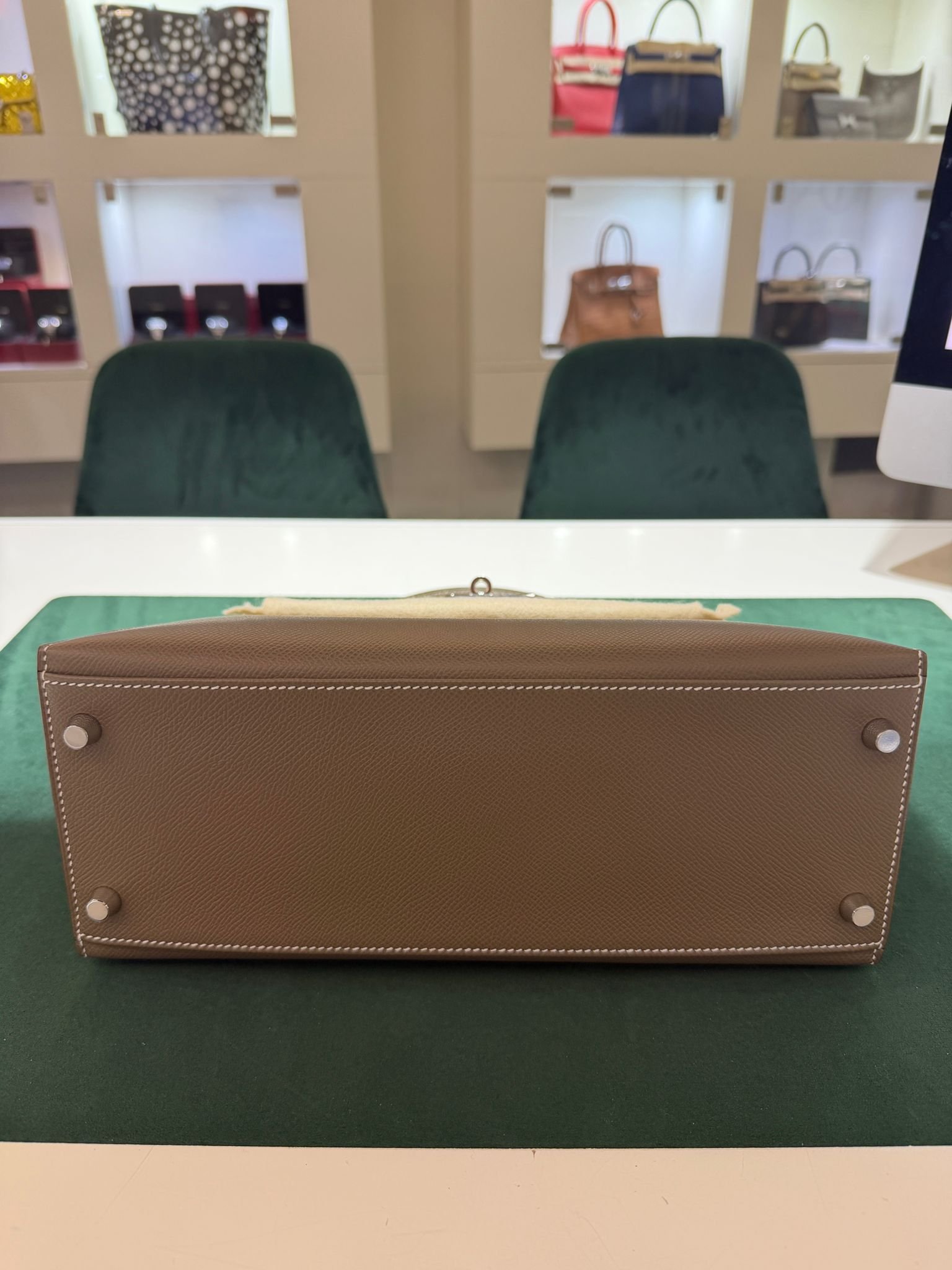 Hermès Kelly 28 Sellier NUOVA 2025 seriale W colore Etoupe ( sabbia ) pelle epsom con hardware in palladio con tutti gli adesivi di protezione dell’imballaggio e dell’hardware full set full pellicole full stickers