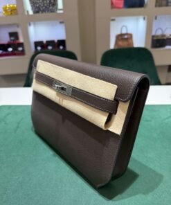Hermès Kelly Dépêches 25 NUOVA 2026 pellame barenia color ÉBÈNE Ebano cioccolato fondente hardware palladio seriale K