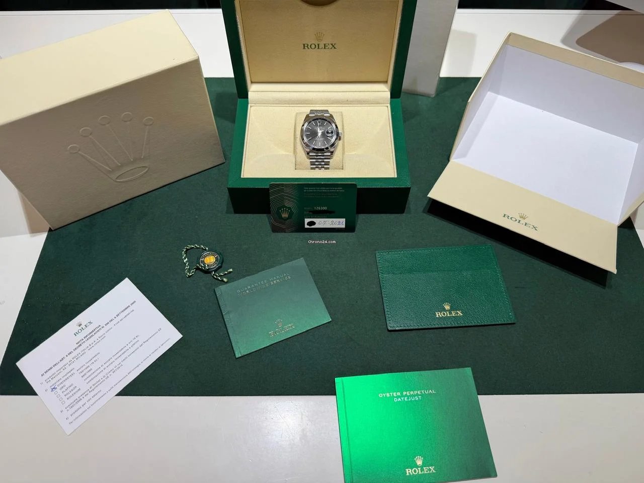 Full set certificato e scatola. Certificato della nostra azienda per 12 mesi su qualsiasi malfunzionamento. Certificato sull’originalità dei suoi pezzi e sulla lecita provenienza. Spedizione con Portavalori guardie armate assicuriamo l’intero importo per il valore dell’orologio.