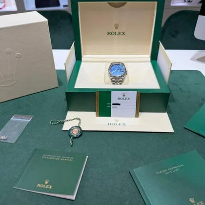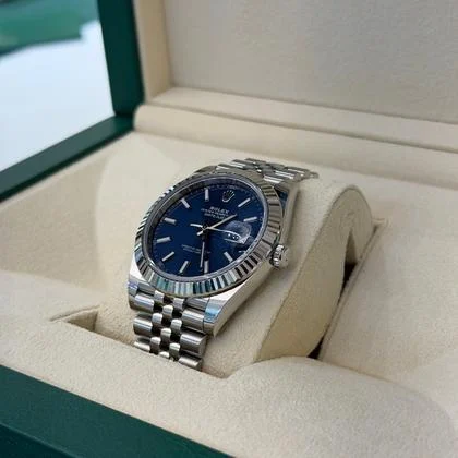 Rolex Datejust 41 quadrante blu indici del 2019 full set top condition con documenti e scatola