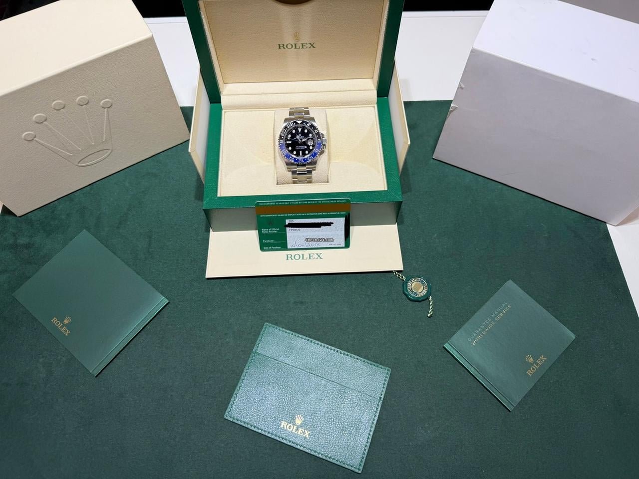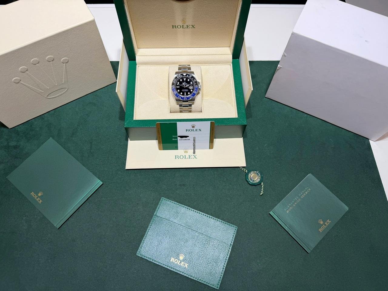 Full set certificato e scatola. Certificato della nostra azienda per 12 mesi su qualsiasi malfunzionamento. Certificato sull’originalità dei suoi pezzi e sulla lecita provenienza. Spedizione con Portavalori guardie armate assicuriamo l’intero importo per il valore dell’orologio.