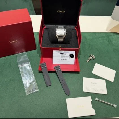 Cartier Santos Large 39,8mm automatic NUOVO 2025 black dial doppio cinturino full set